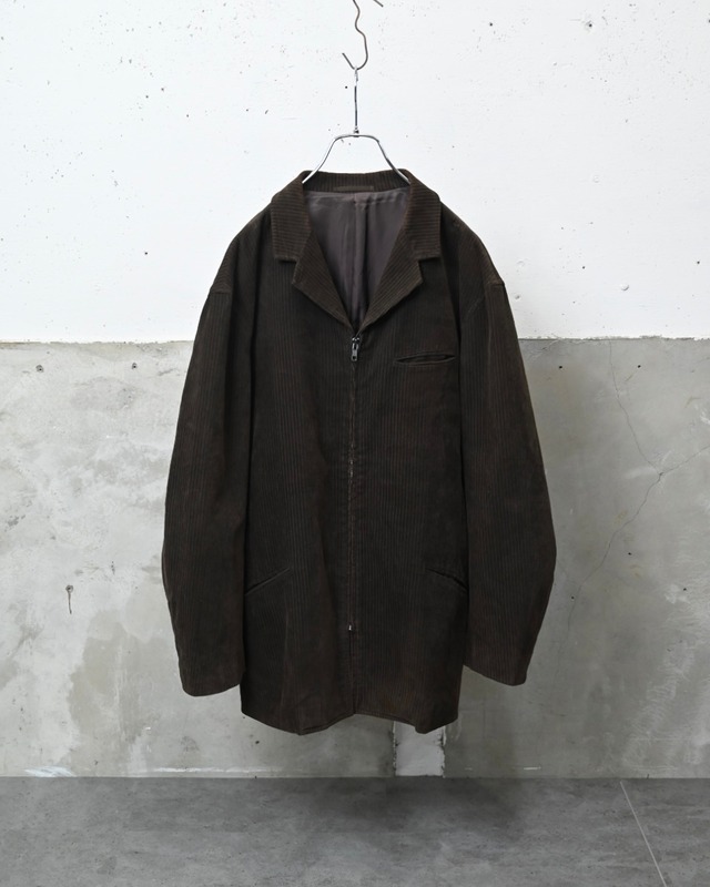 柔らかなコットン100%細畝コーデュロイジャケット。 ややミドルに設定された丈感に、肩を落としたゆとりのあるシルエット。 素材特有の温かみと落ち着いた深みのあるブラウンカラーが印象的で、Y’s for menらしいミニマルなデザイン性も◎ 無駄を削ぎ落としたジップアップ仕様に、胸ポケットと腰ポケットのみの潔いデザイン。シャツ感覚で軽く羽織っても、コートのように重ねても様になるバランス感。 モードの空気を纏いながらも、日常に自然と馴染む一枚。 【condition】A 【material】COTTON:100% 【color】BROWN 【size】 着丈:77cm 身幅:59cm 肩幅:51.5cm 袖丈:59.5cm