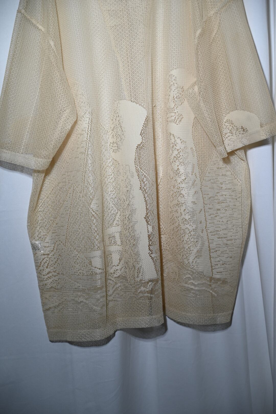 シアーとはまた違った透け感のあるメッシュ素材で着心地も非常に軽やかなデザインシャツ。ストリートかつラグジュアリーは印象でルーズなサイジングにオープンカラー仕様。うるさい柄が多いですがこちらは単色で比較的に着用しやすいかと。