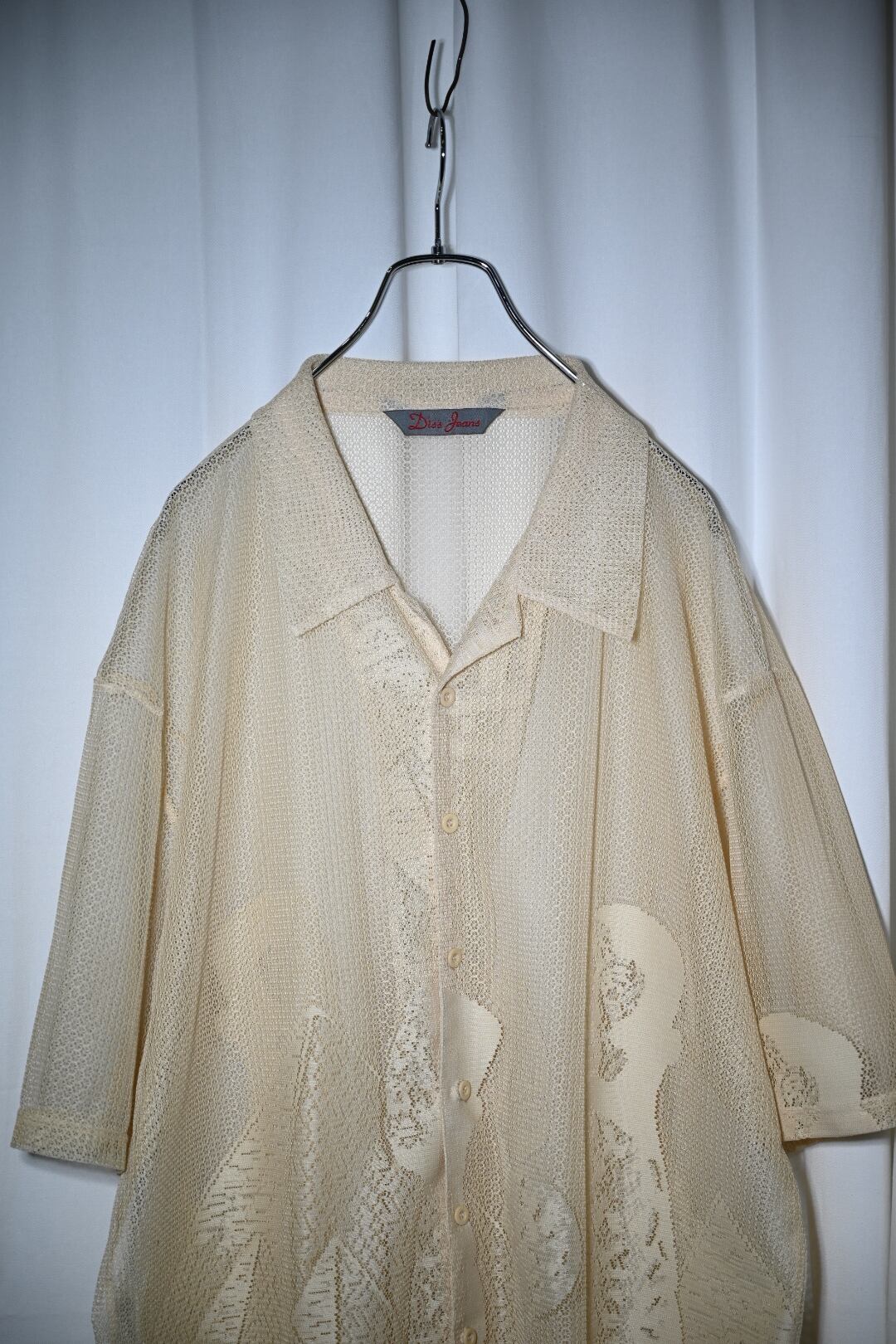 90's MESH DESIGN OPEN COLLAR S/S SHIRT