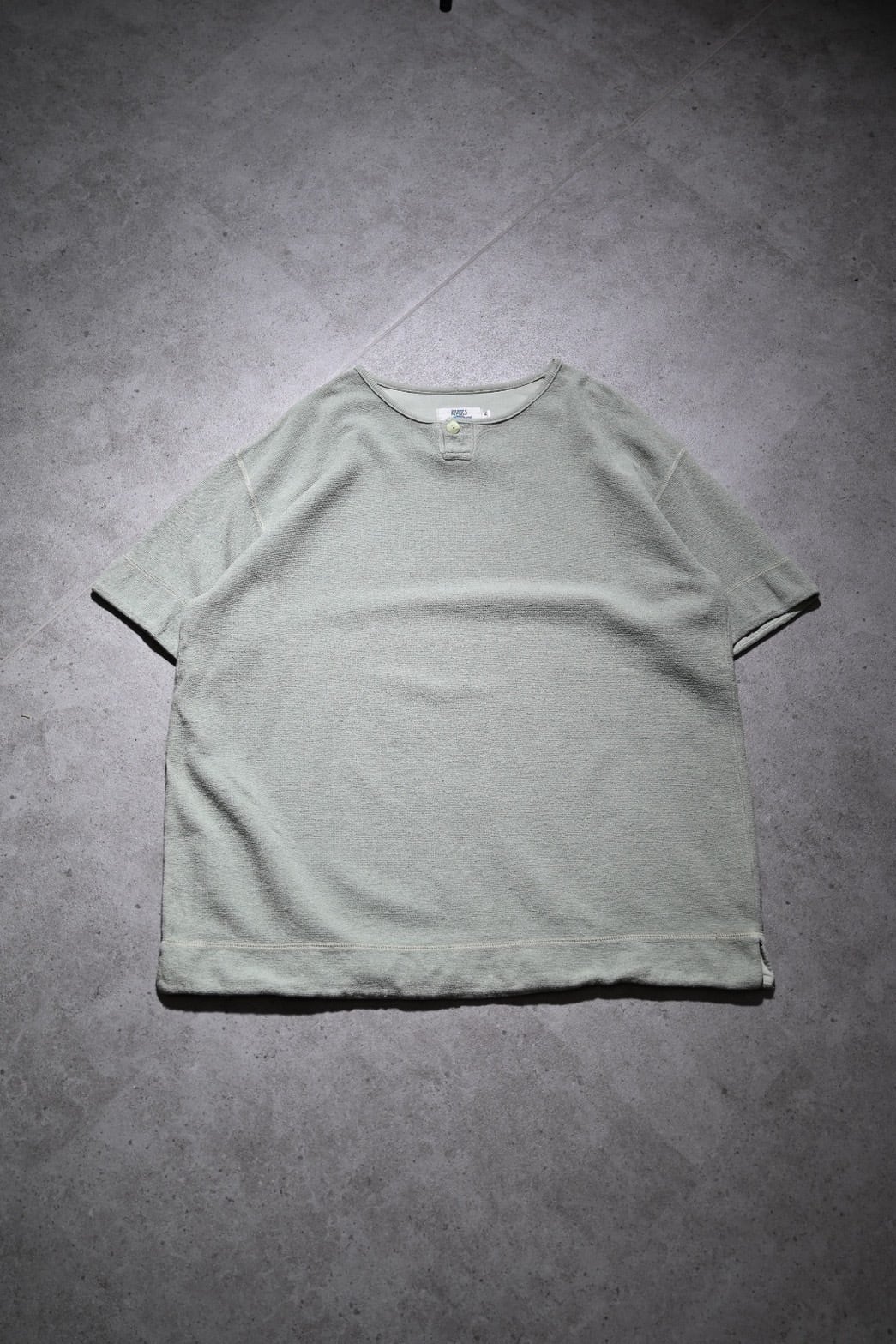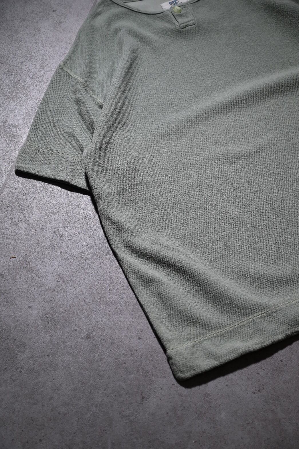 ごわつき感のある生地感と淡いカラーが特徴的なヘンリーネックTEE。
