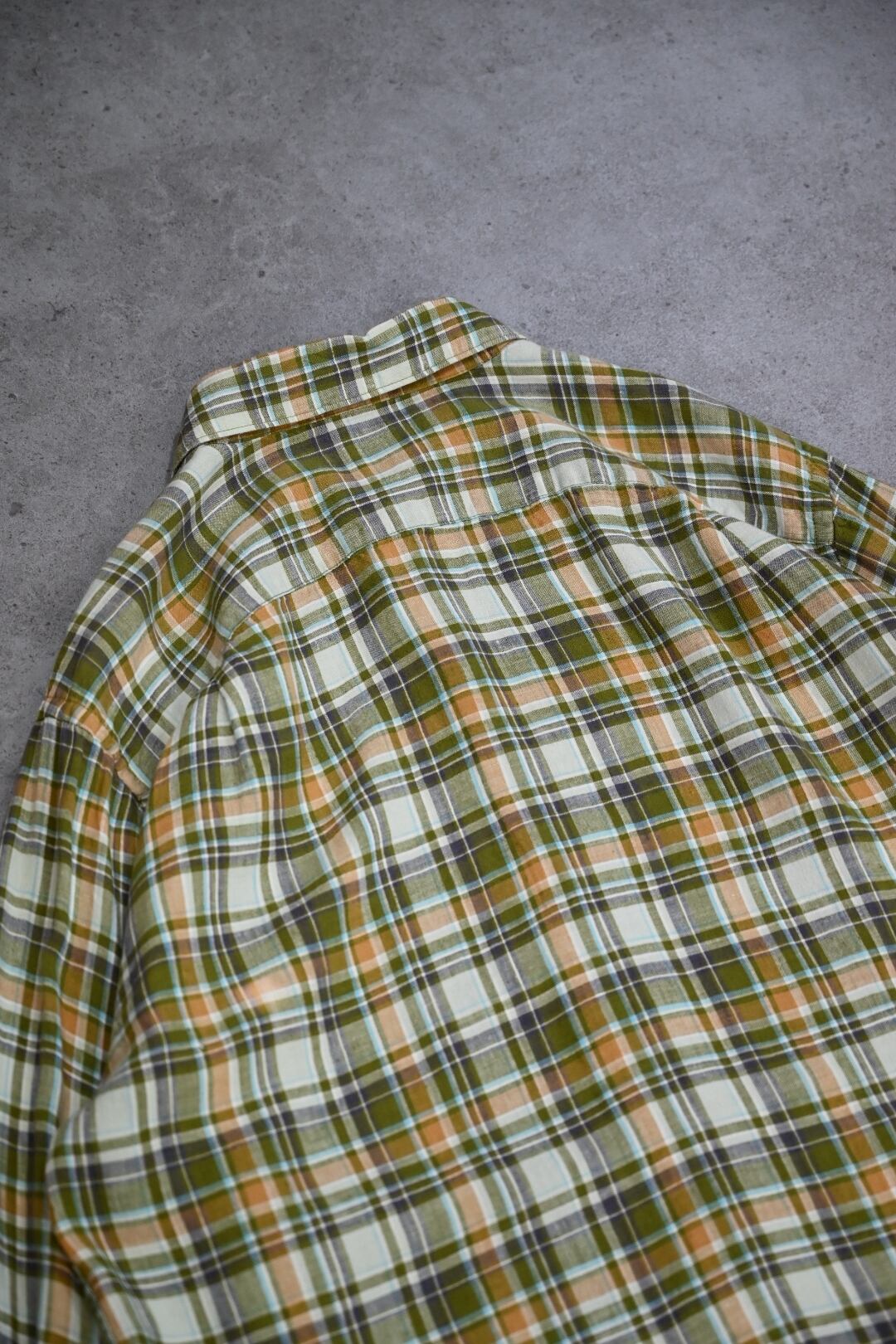 大振りな身幅と、シャツとしては割とコンパクトな丈感で、レイヤードなんかでも使いやすいかと。また、カラーリングが絶妙でスタイリングに程よい抜け感を出せると思います。