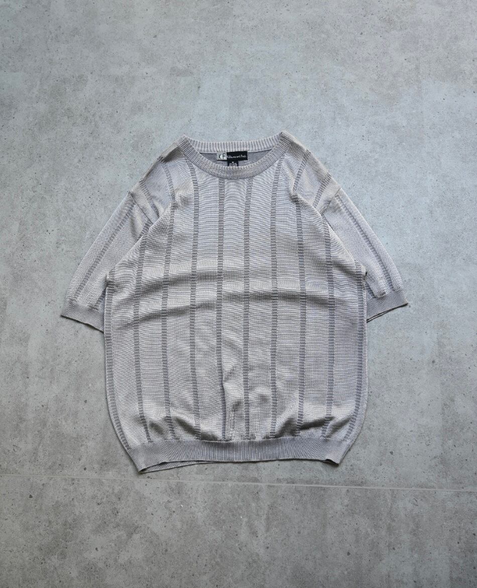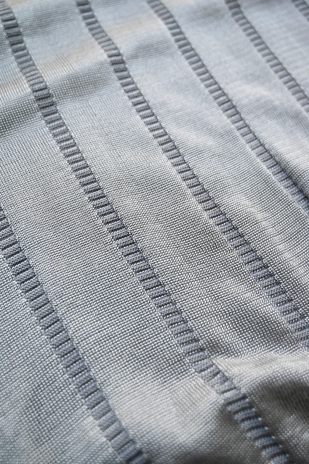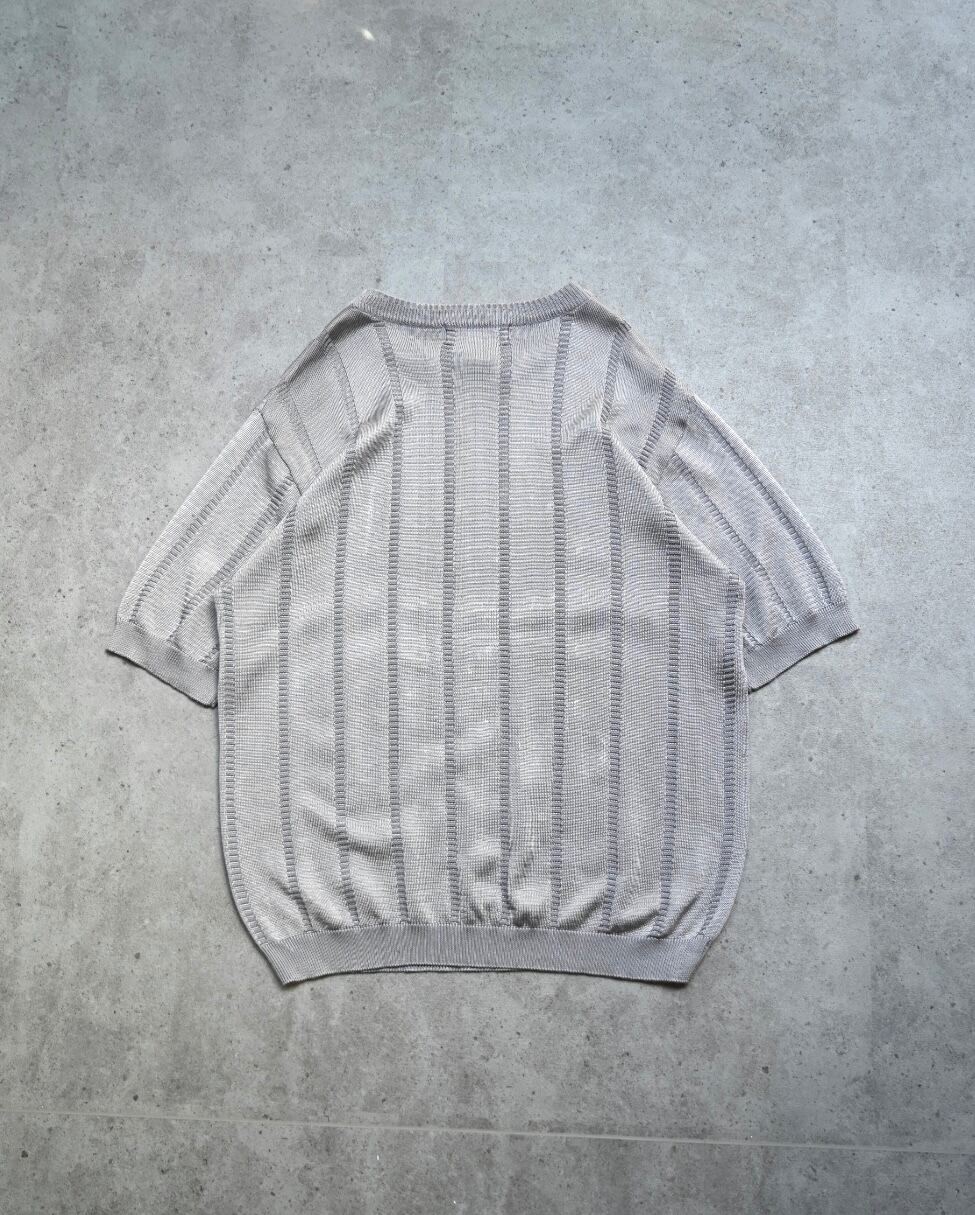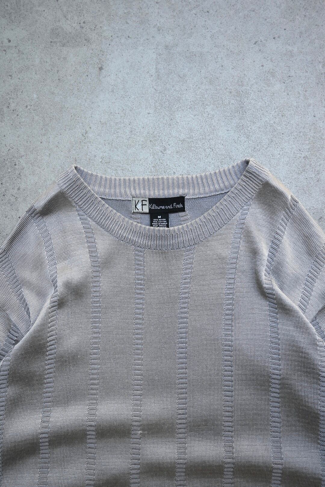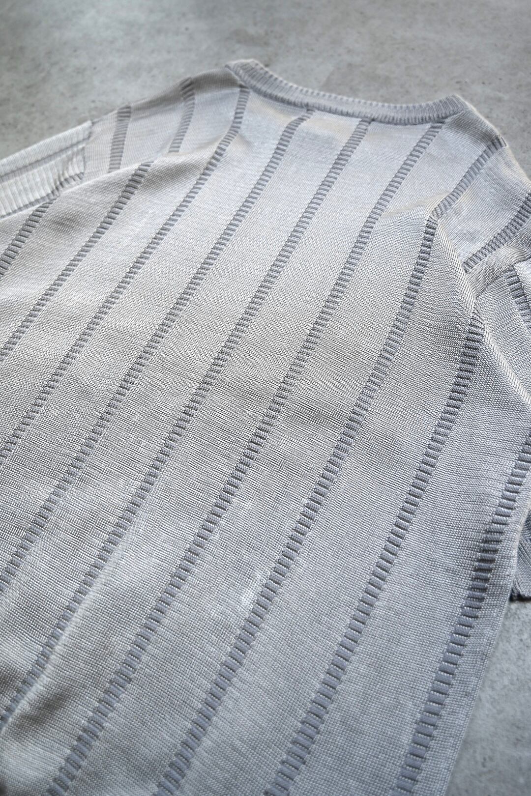 立体感のある編み柄で構成された、グレートーンのテクスチャードストライプニット。