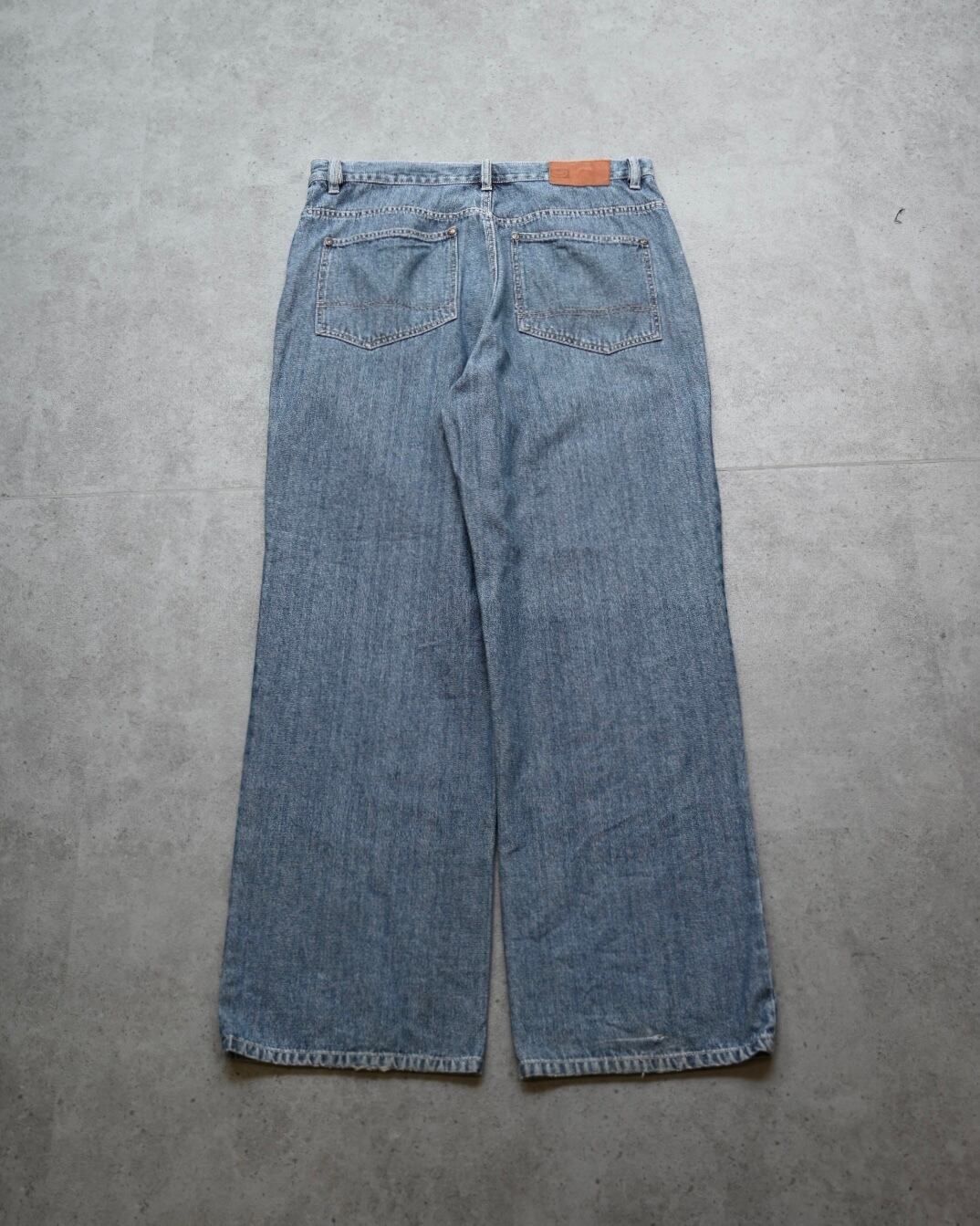 ヘリンボーンと綾織を織り交ぜた奥行きのある表情のバギーデニム。