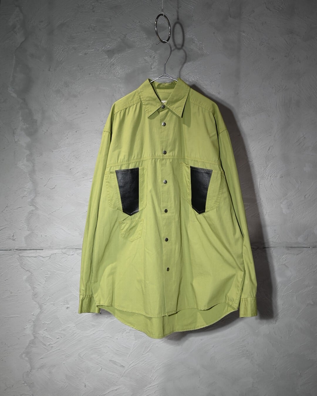 色目も良くハリのあるコットン素材の一着。レザー切替のポケットでボタンはスナップボタンを使用