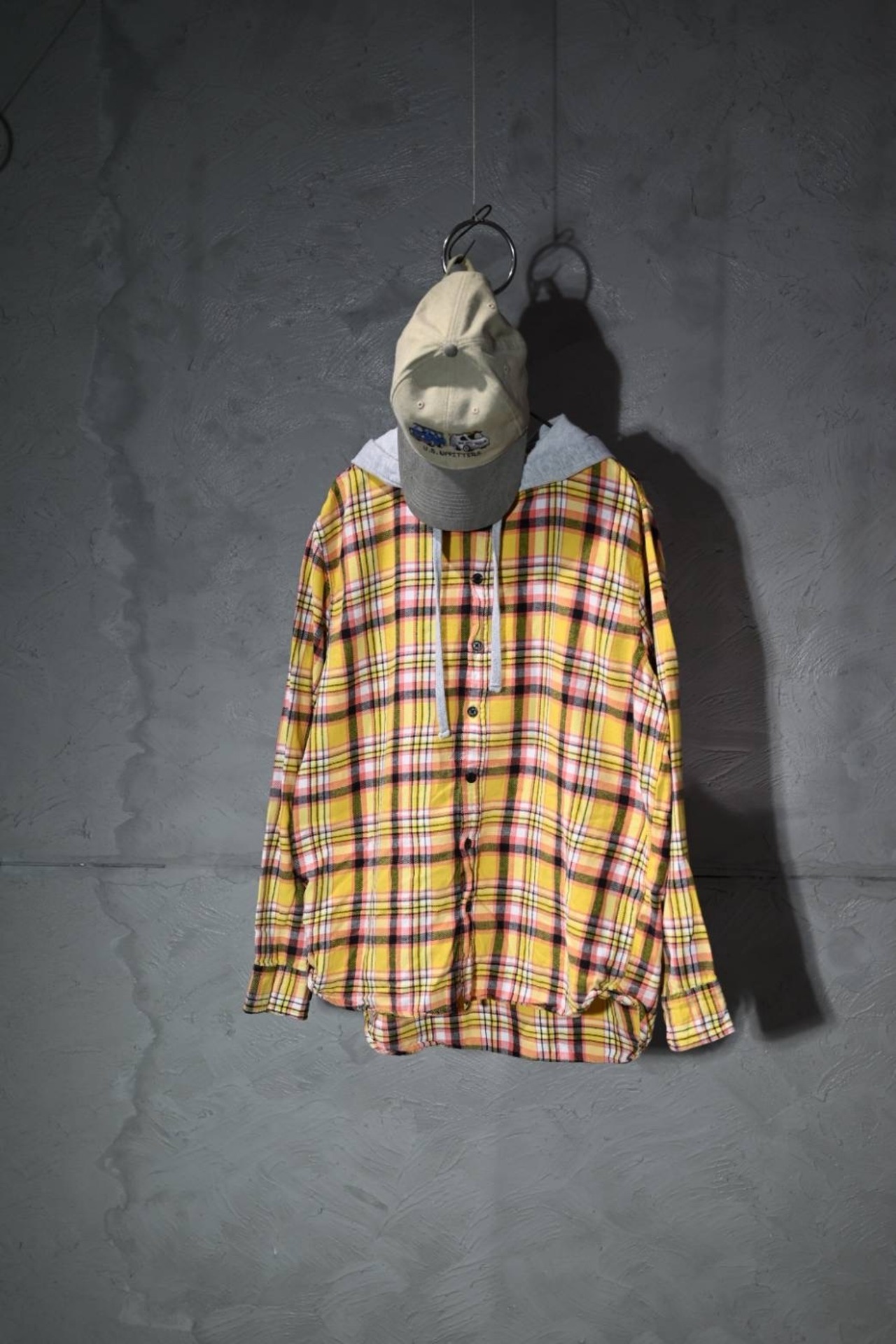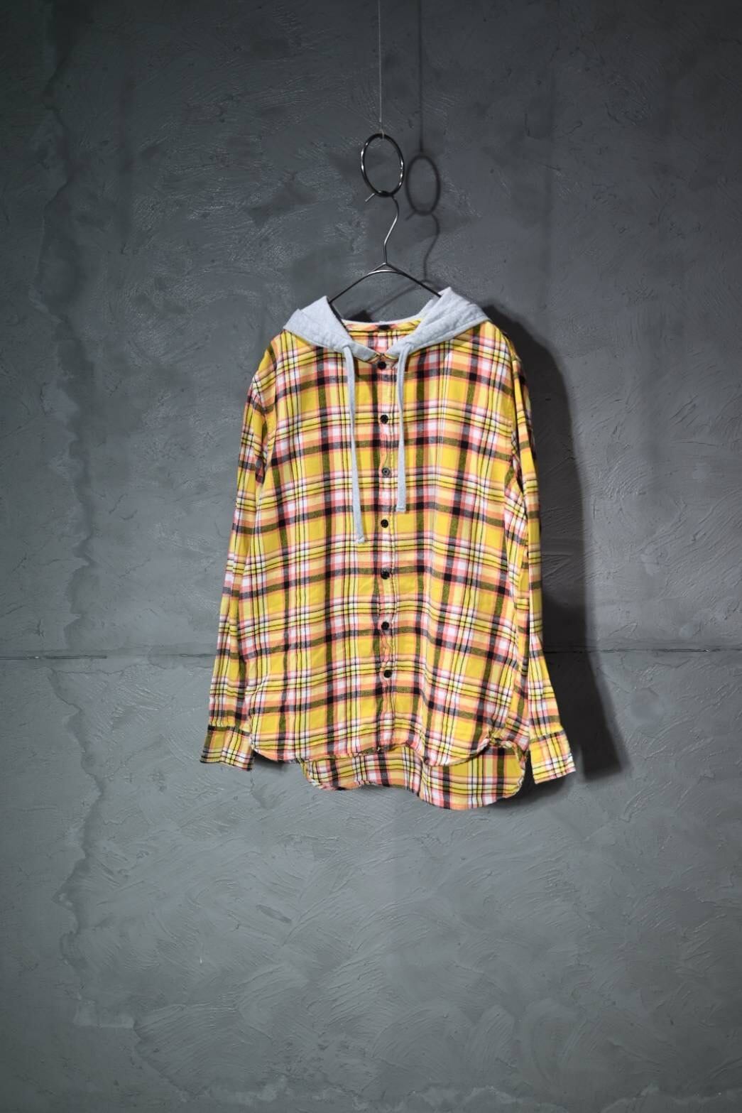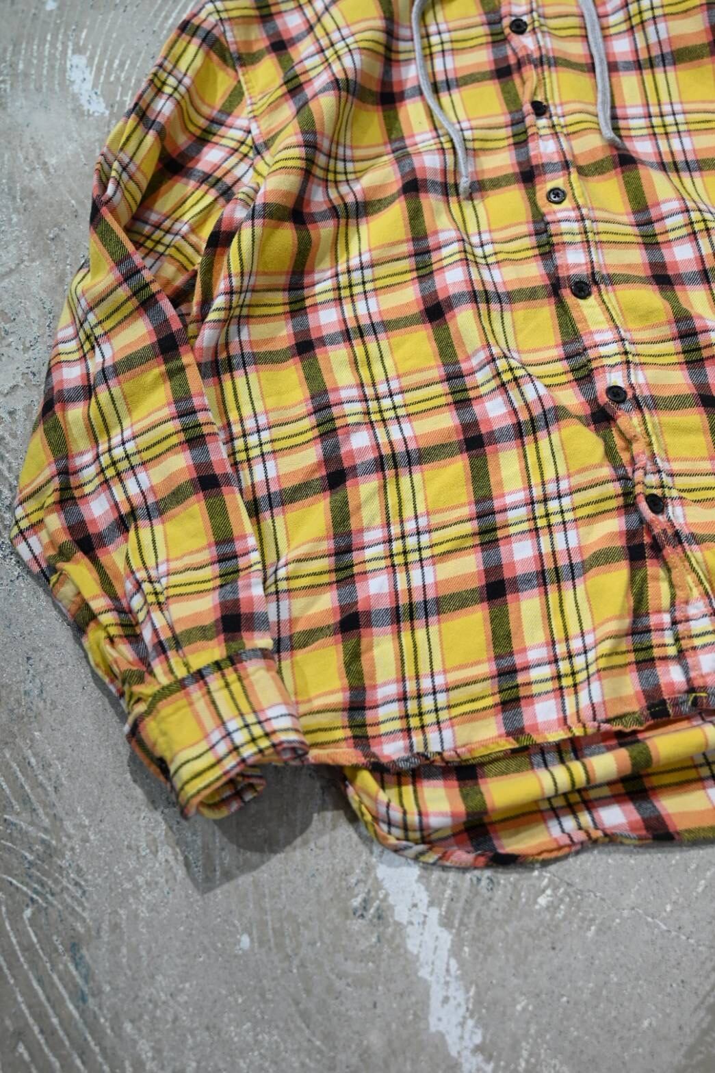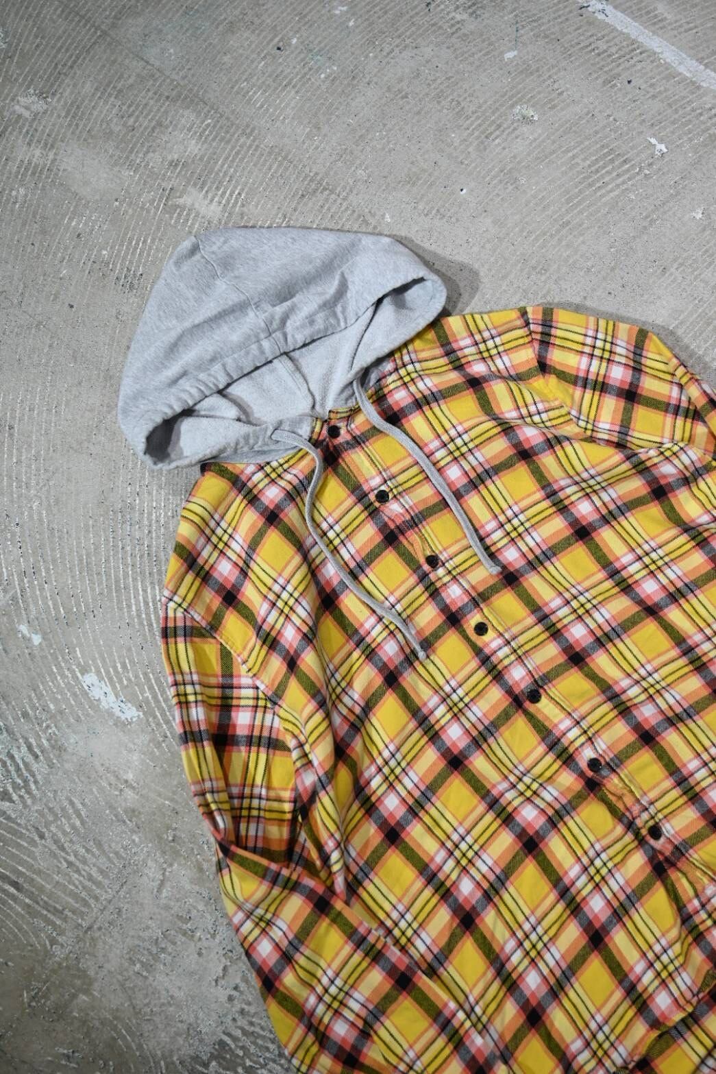 イエローベースにブラック・レッド・ホワイトを織り交ぜたチェックパターンが目を引くフランネルシャツ。