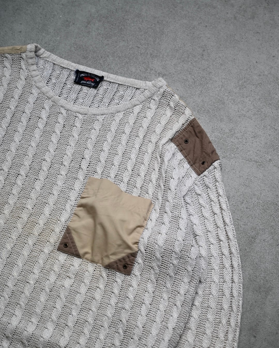 ミリタリーのコマンドセーターをサンプリングしたデザインニット。