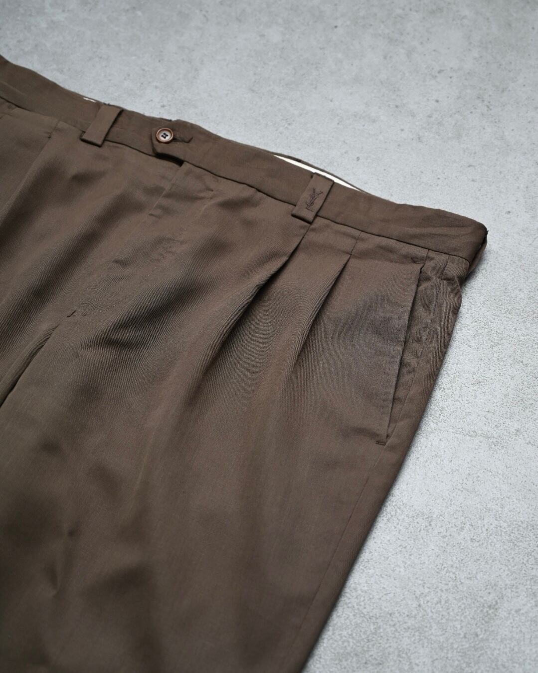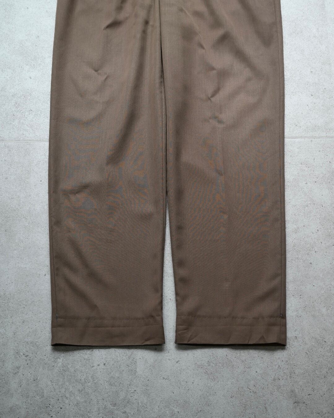 ワイドに落ちるシルエット感、アダルトな燻んだブラウンカラーも魅力的。