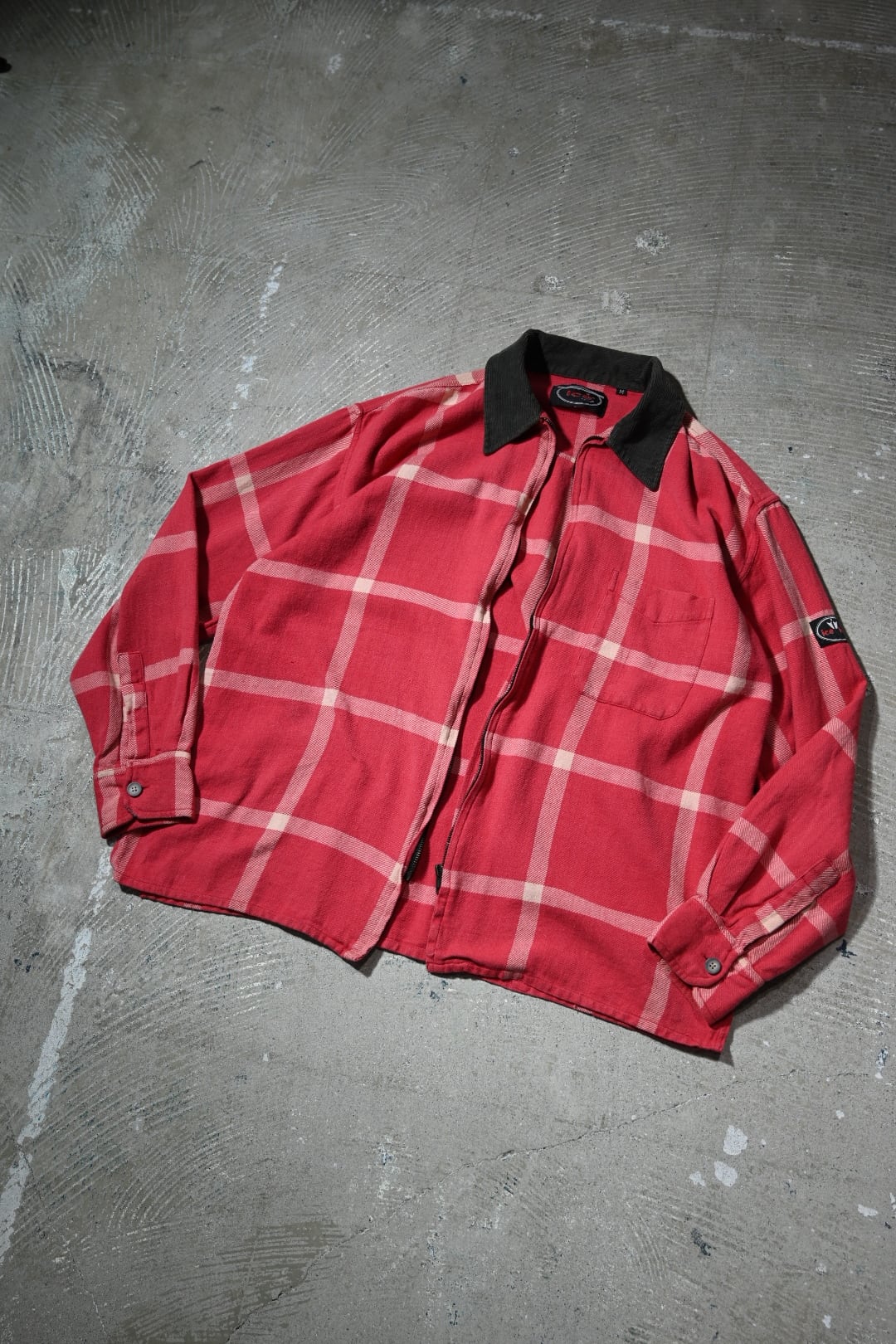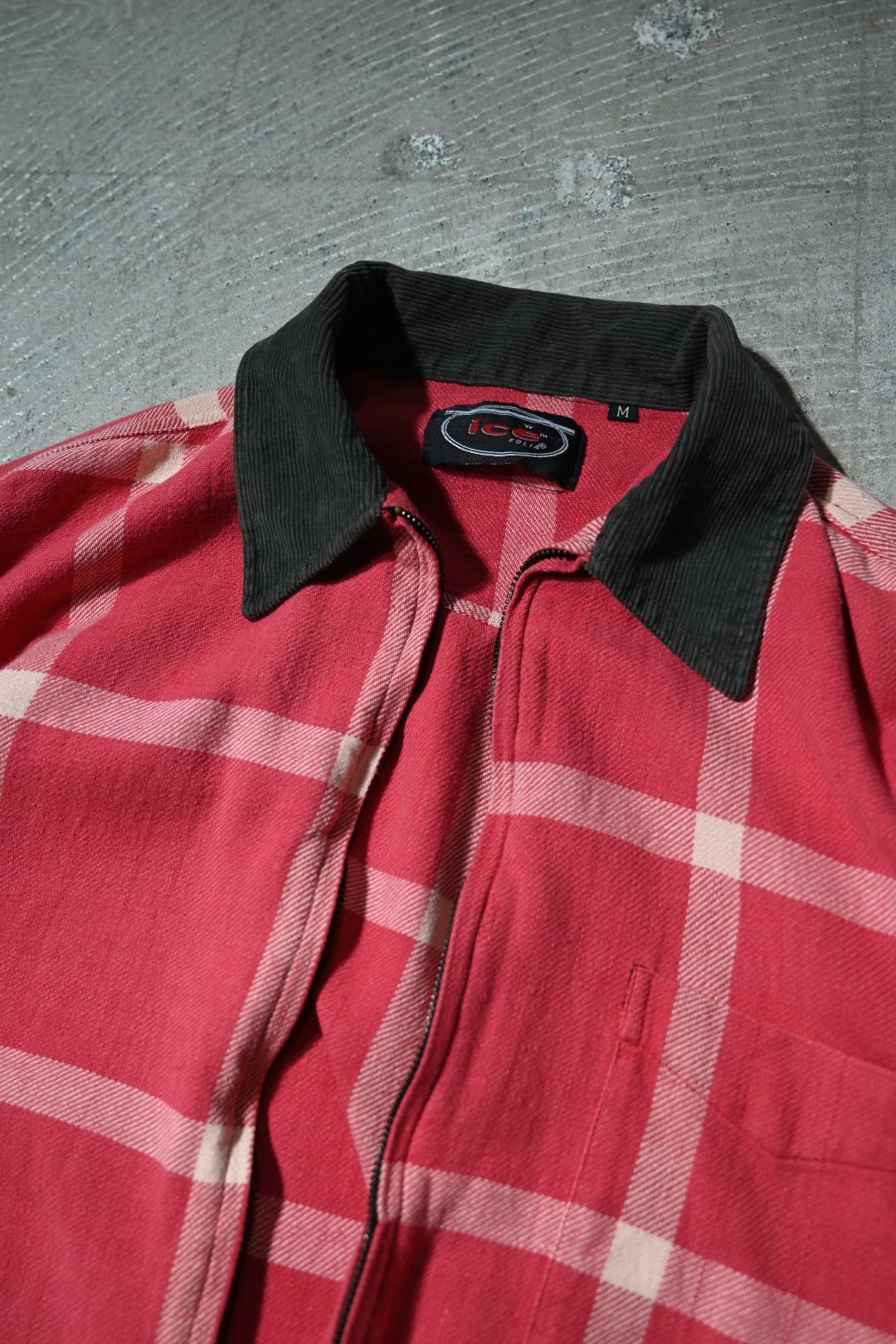 大ぶりなチェックでフルジップ。襟はコーデュロイ素材に切り替えられ非常に気の利いた一着