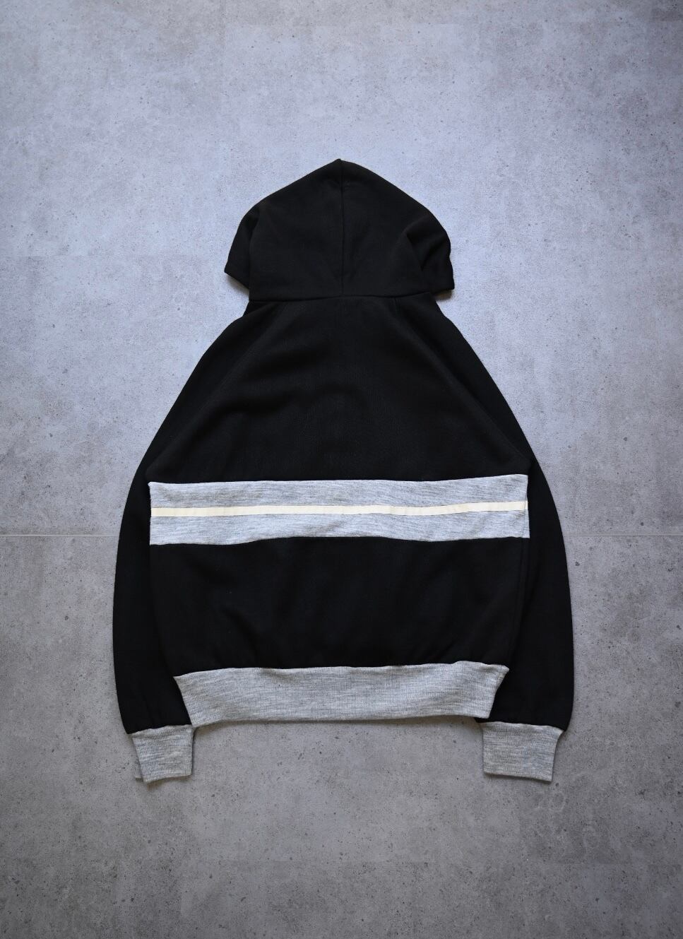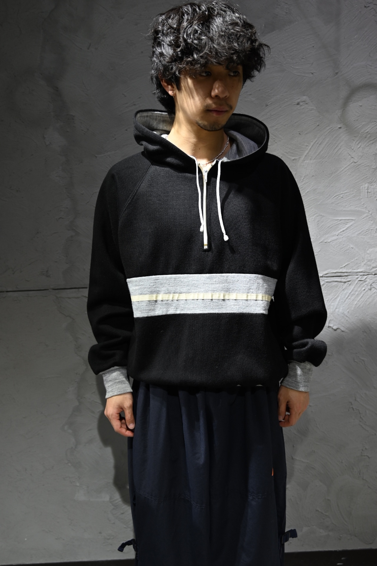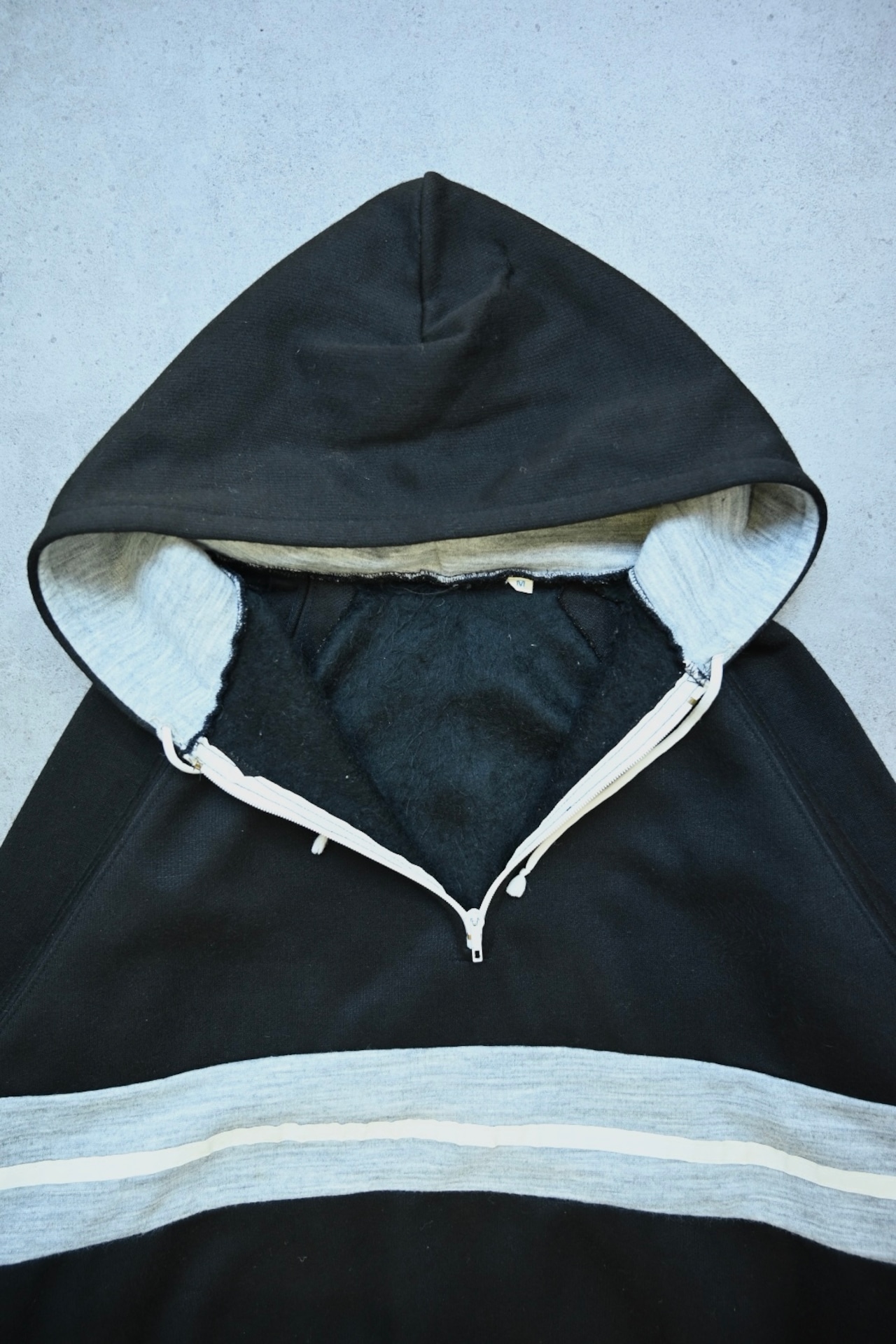 モノトーンのバランスが程よく、リブも程よく残っておりシルエットの調節可能。生地感は薄めですが、裏地がかなり毛足の長い起毛素材になっているのでAWシーズンで長く着用いただけるかと。