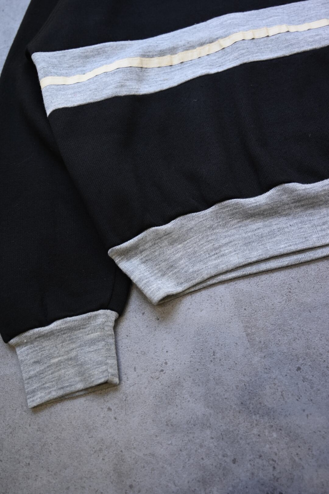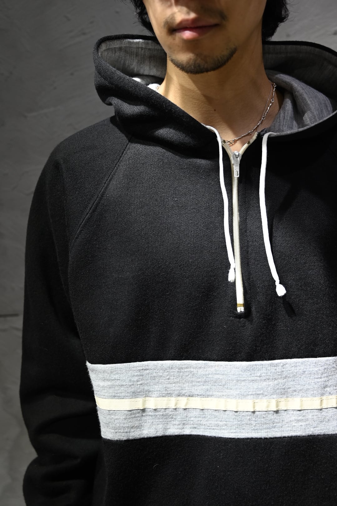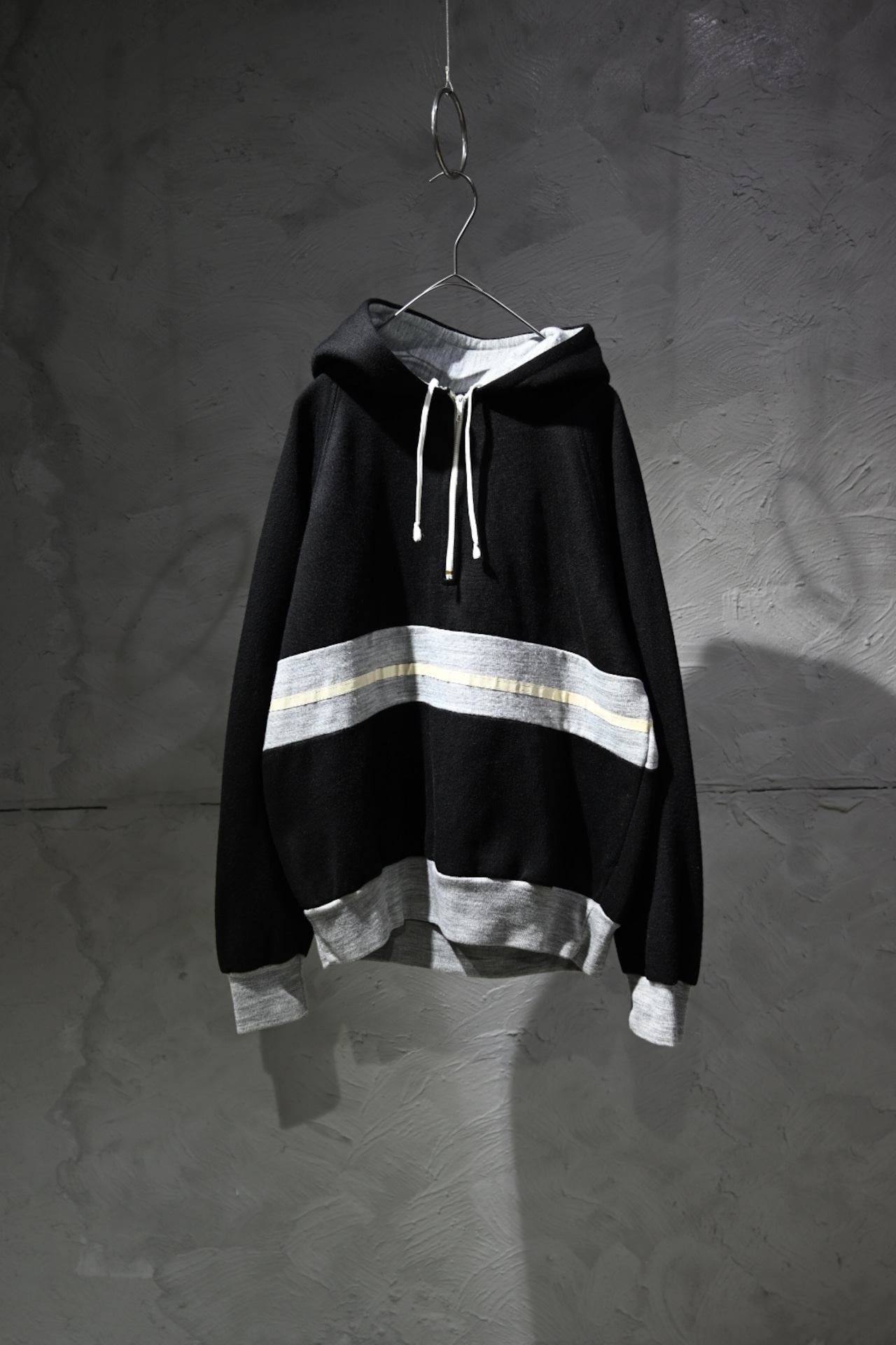 モノトーンのバランスが程よく、リブも程よく残っておりシルエットの調節可能。生地感は薄めですが、裏地がかなり毛足の長い起毛素材になっているのでAWシーズンで長く着用いただけるかと。
