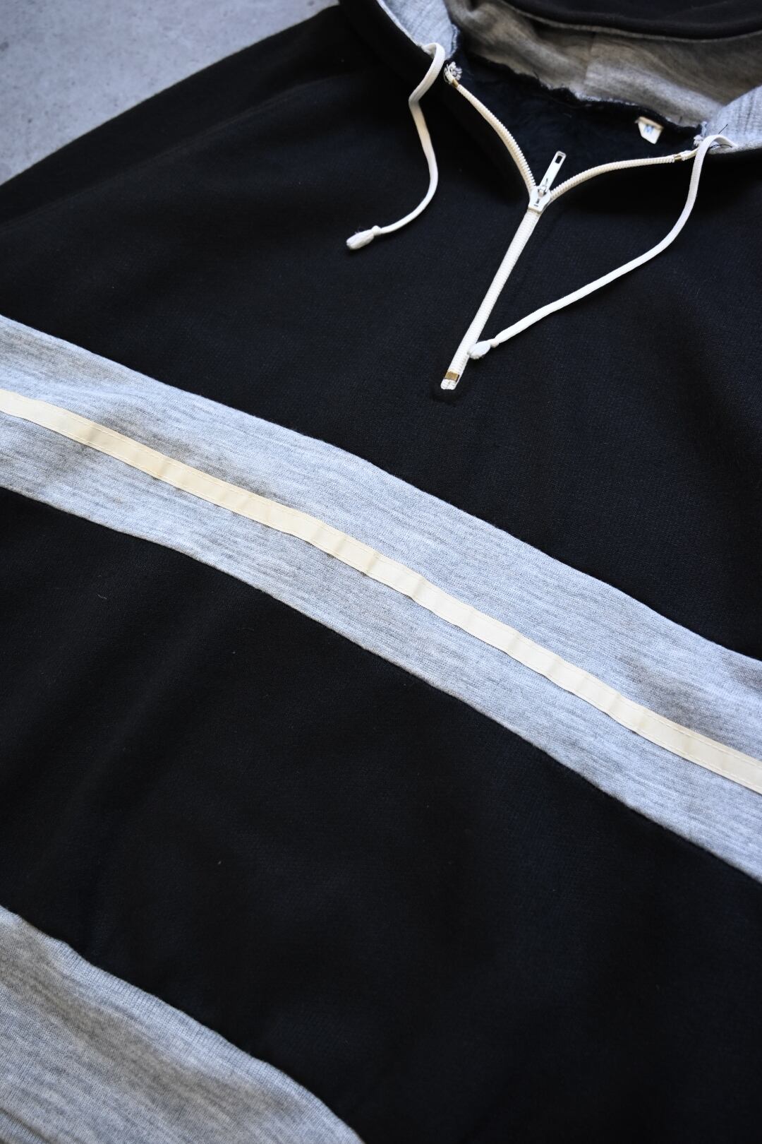 フロントに配置されたグレーボディのラインとリフレクター調テープが目を惹くフーディジャケット。