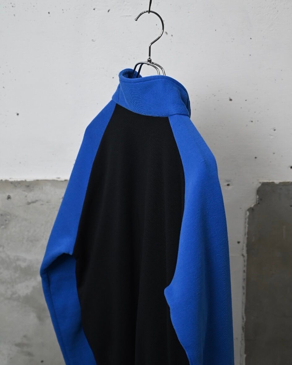 ブラックベースにブルーとホワイトのラインを配した、クラシックなカラーリングが魅力の一着。上からテーラードジャケット等着てみても面白そうです。