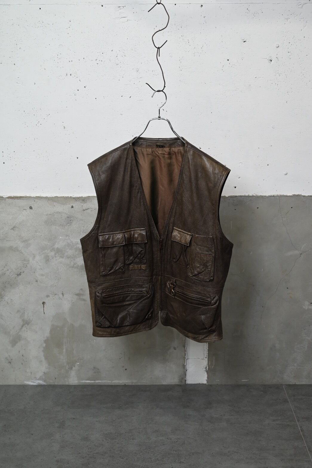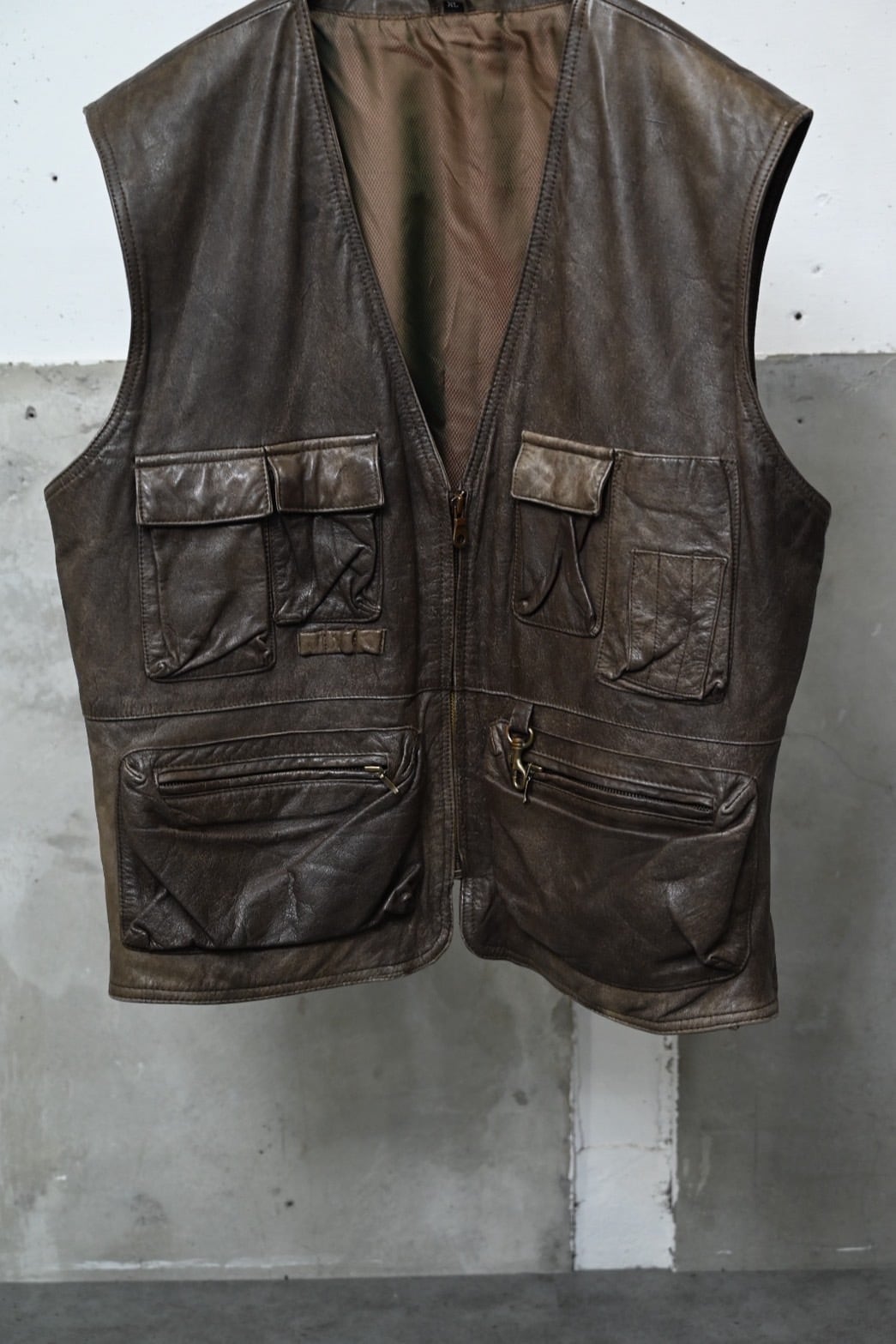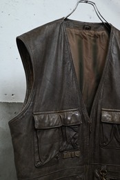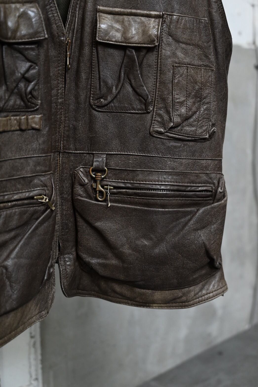 無骨な風合いが魅力の、オールレザーのフィッシングベスト。