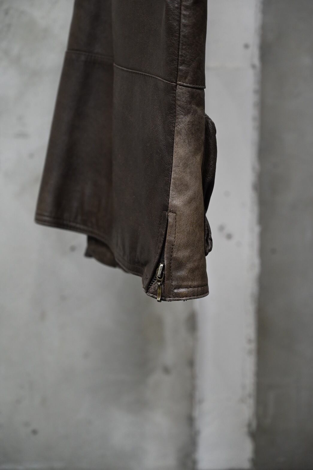 厚手のレザーを使用し、深みのあるブラウンカラーが経年の表情を際立たせる一着。