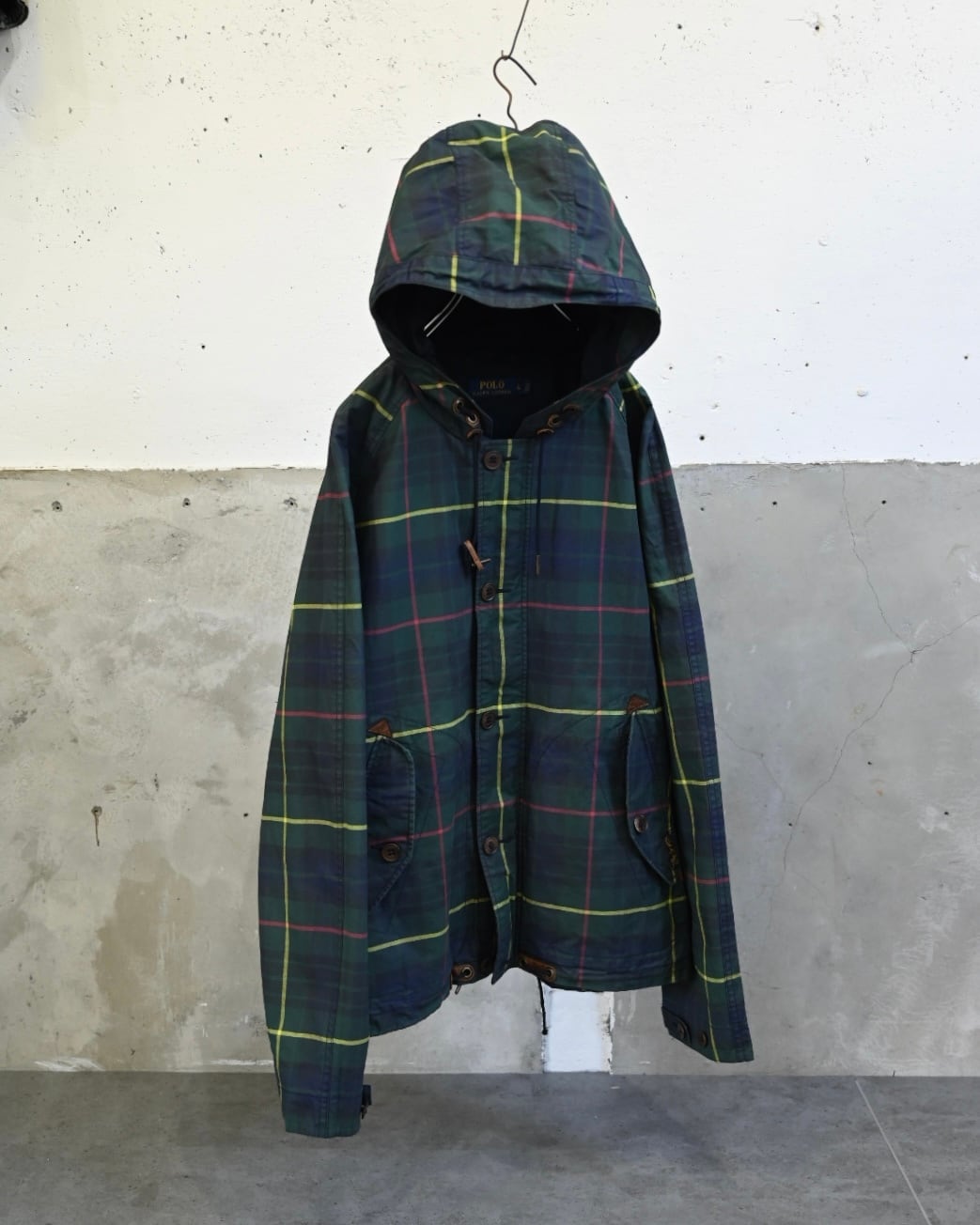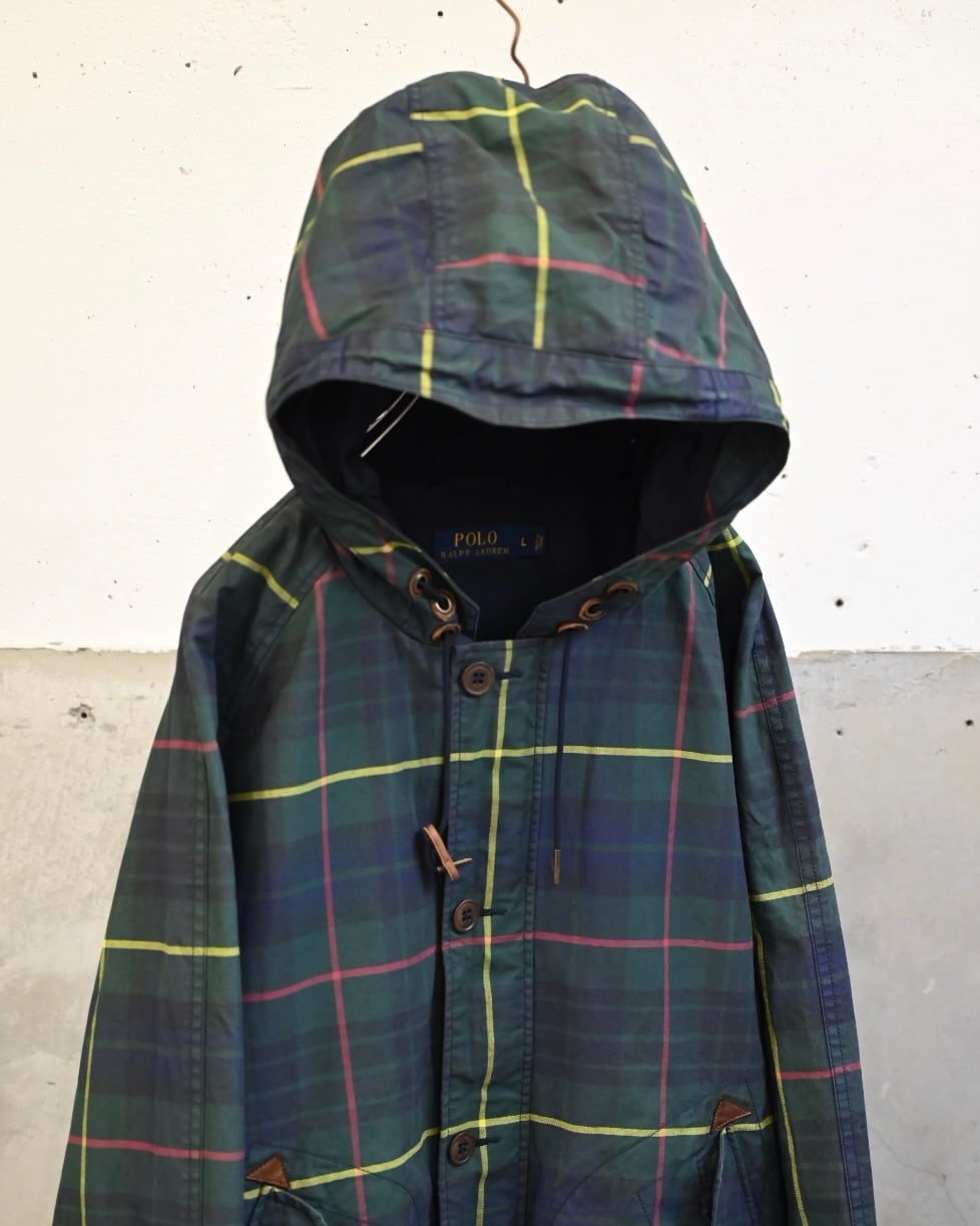 フラップ付きポケット、ドローコードなど服としての汎用性、チェックのパターンなどこのブランドらしい素晴らしい一枚。