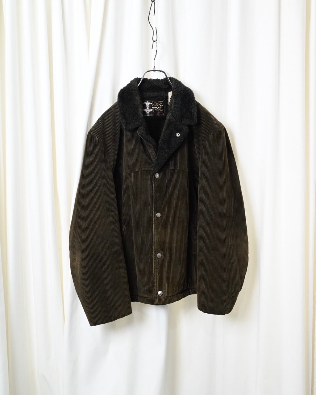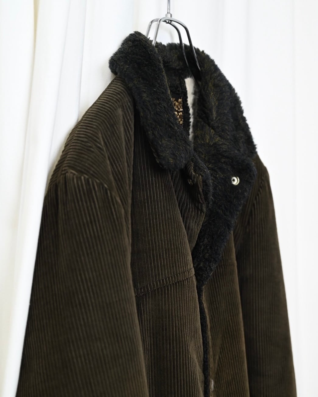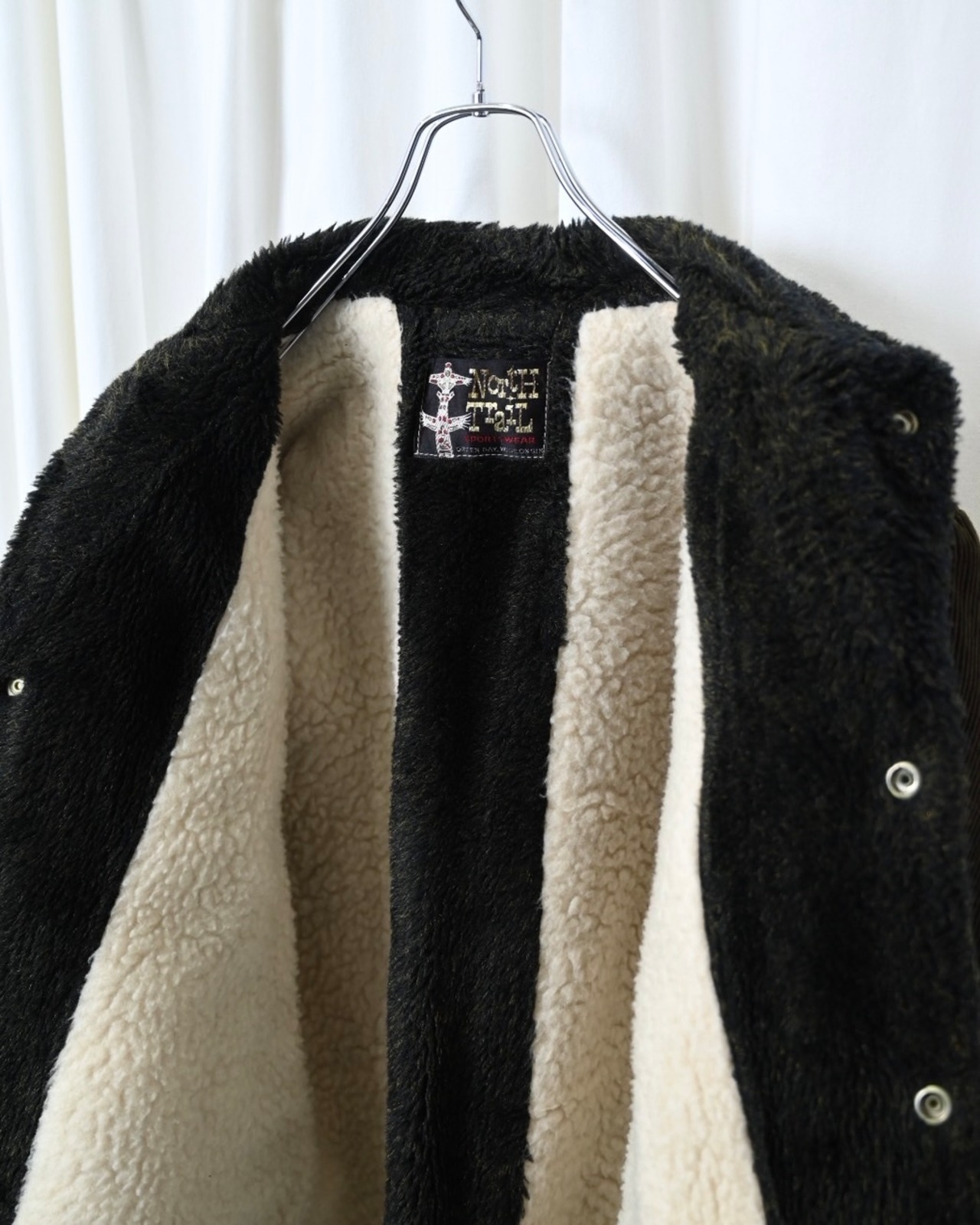身頃から襟元までボアが配された防寒性の高い仕様で、フロントはスナップボタン、ショート丈でバランスの取りやすいシルエット。