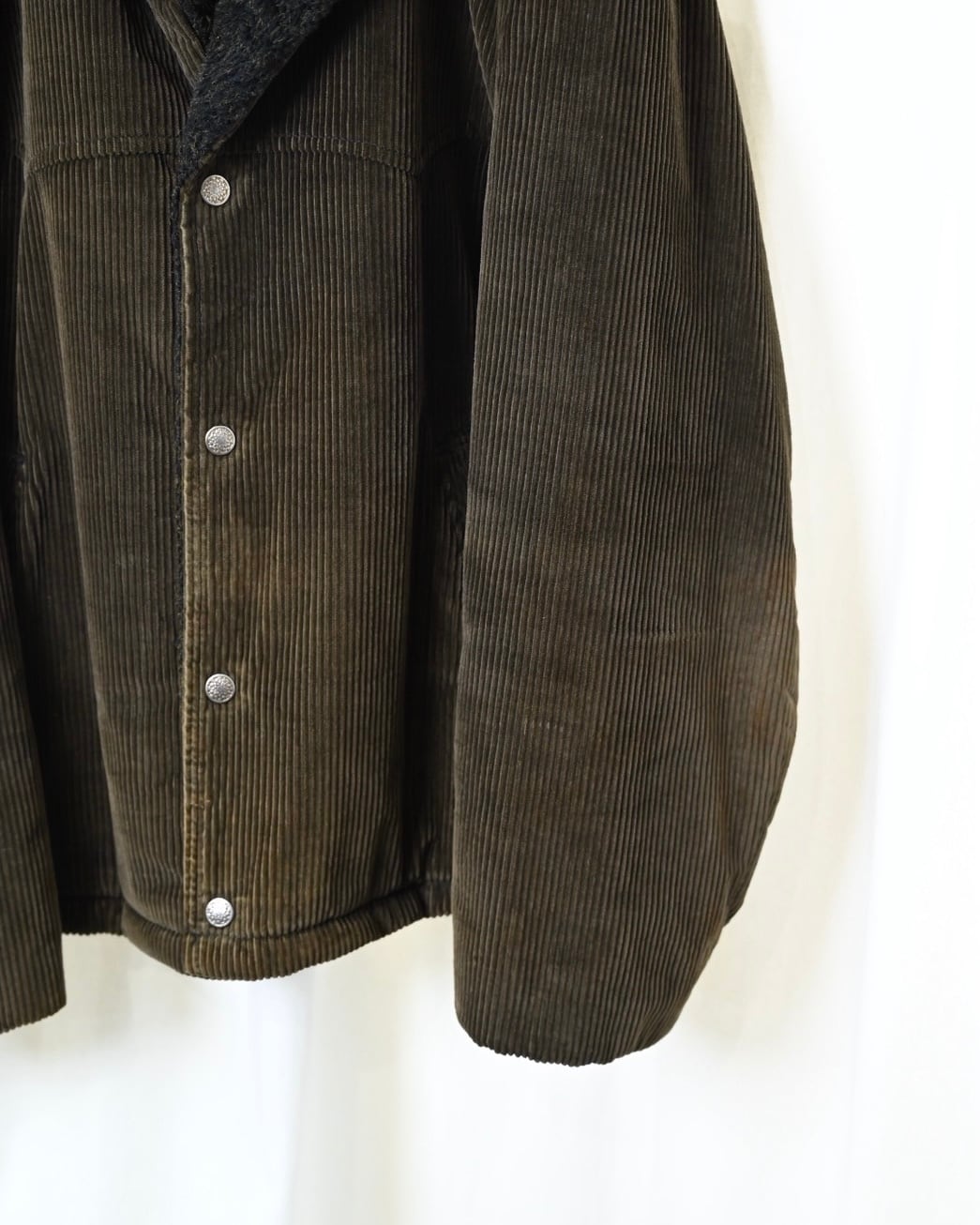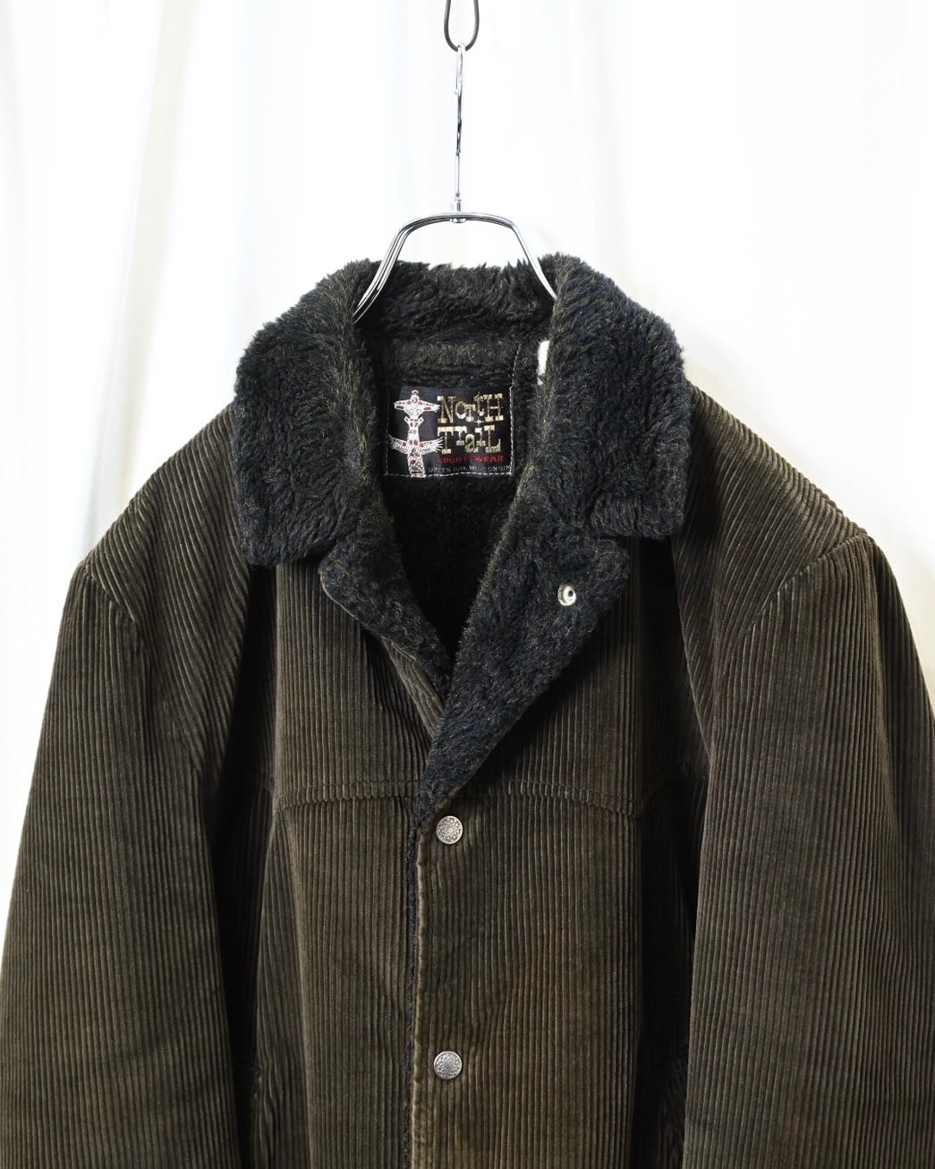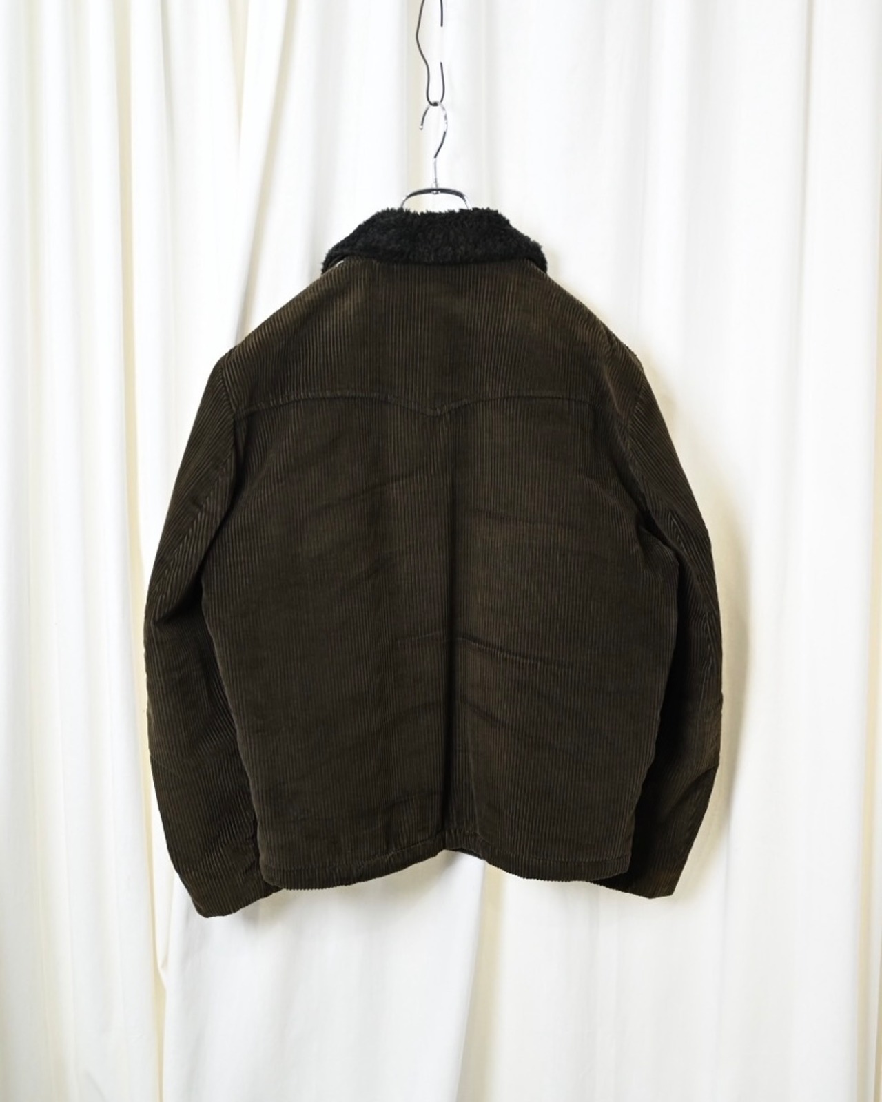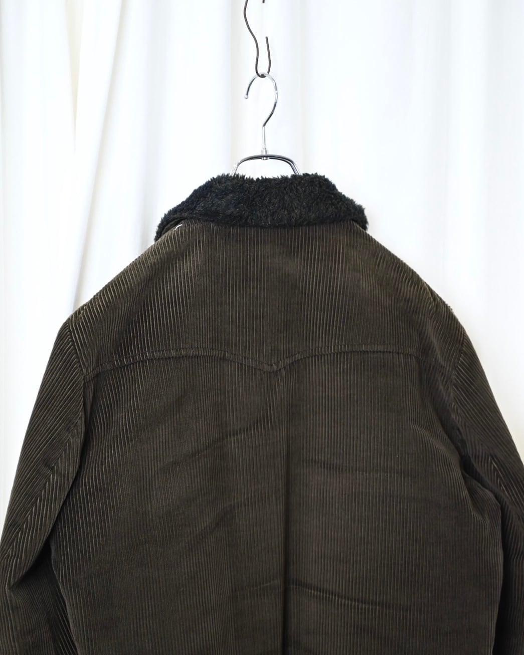 身頃から襟元までボアが配された防寒性の高い仕様で、フロントはスナップボタン、ショート丈でバランスの取りやすいシルエット。