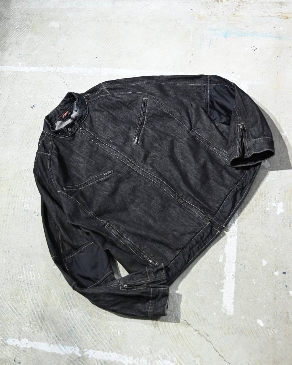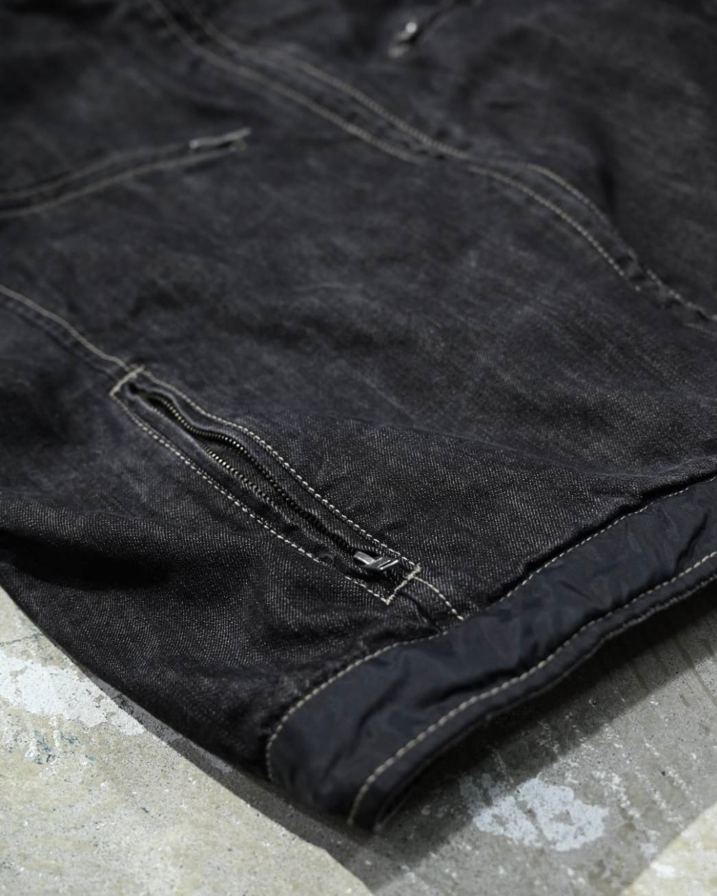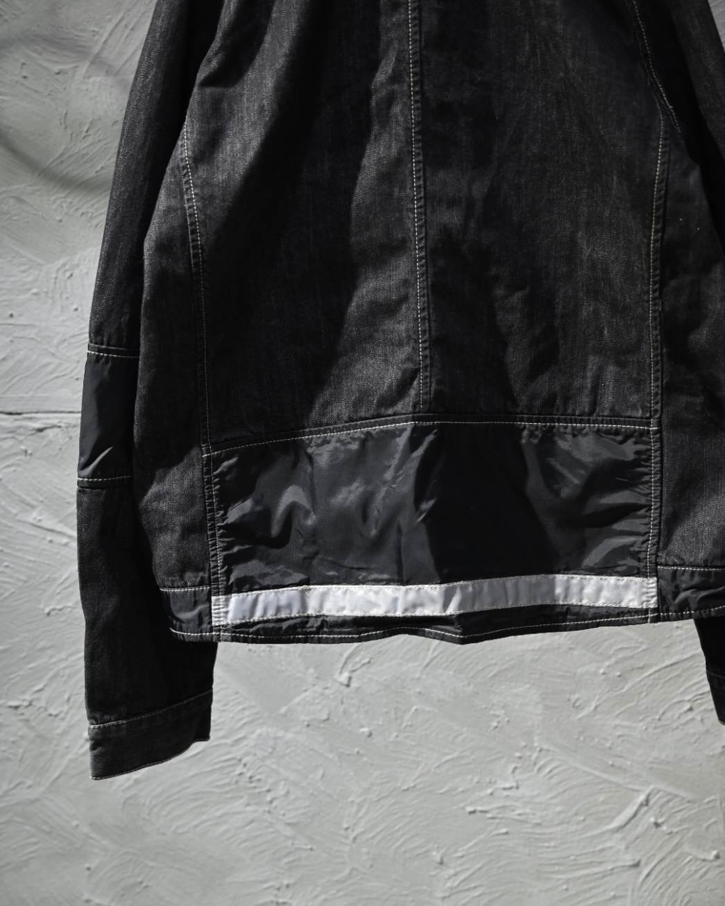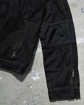 ブラックデニムをベースに、肘・裾・バックのナイロン素材切り替えの立体感とテック感◎
