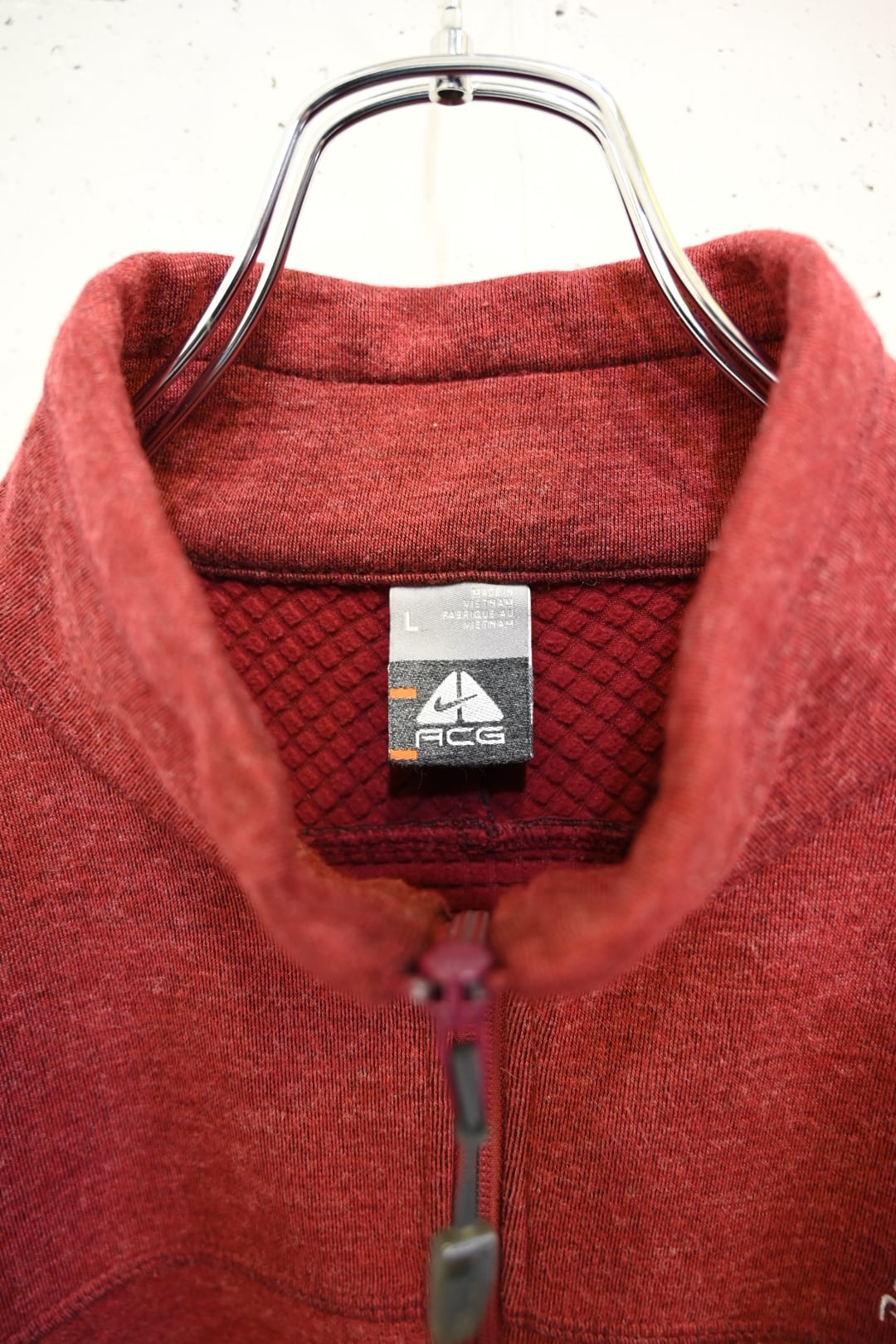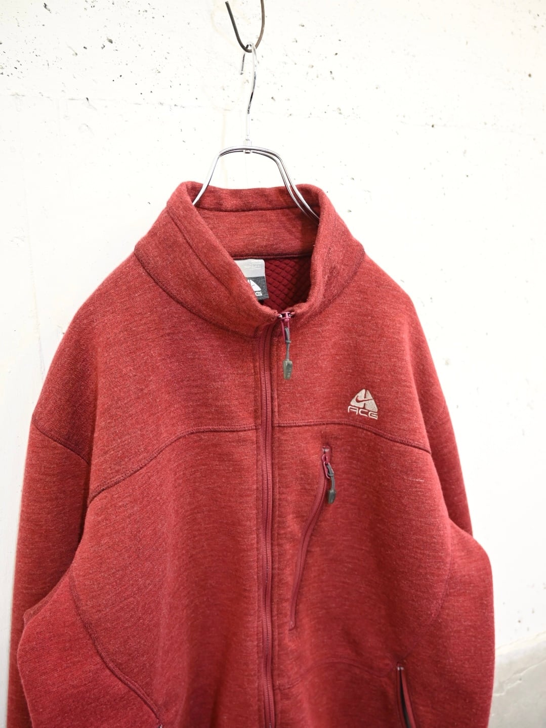 立体的な切り替えパターンからなる程よく高さのあるスタンドカラーに、表情のあるメランジ調のカラーとロゴ配置が控えめながら存在感のある一着。