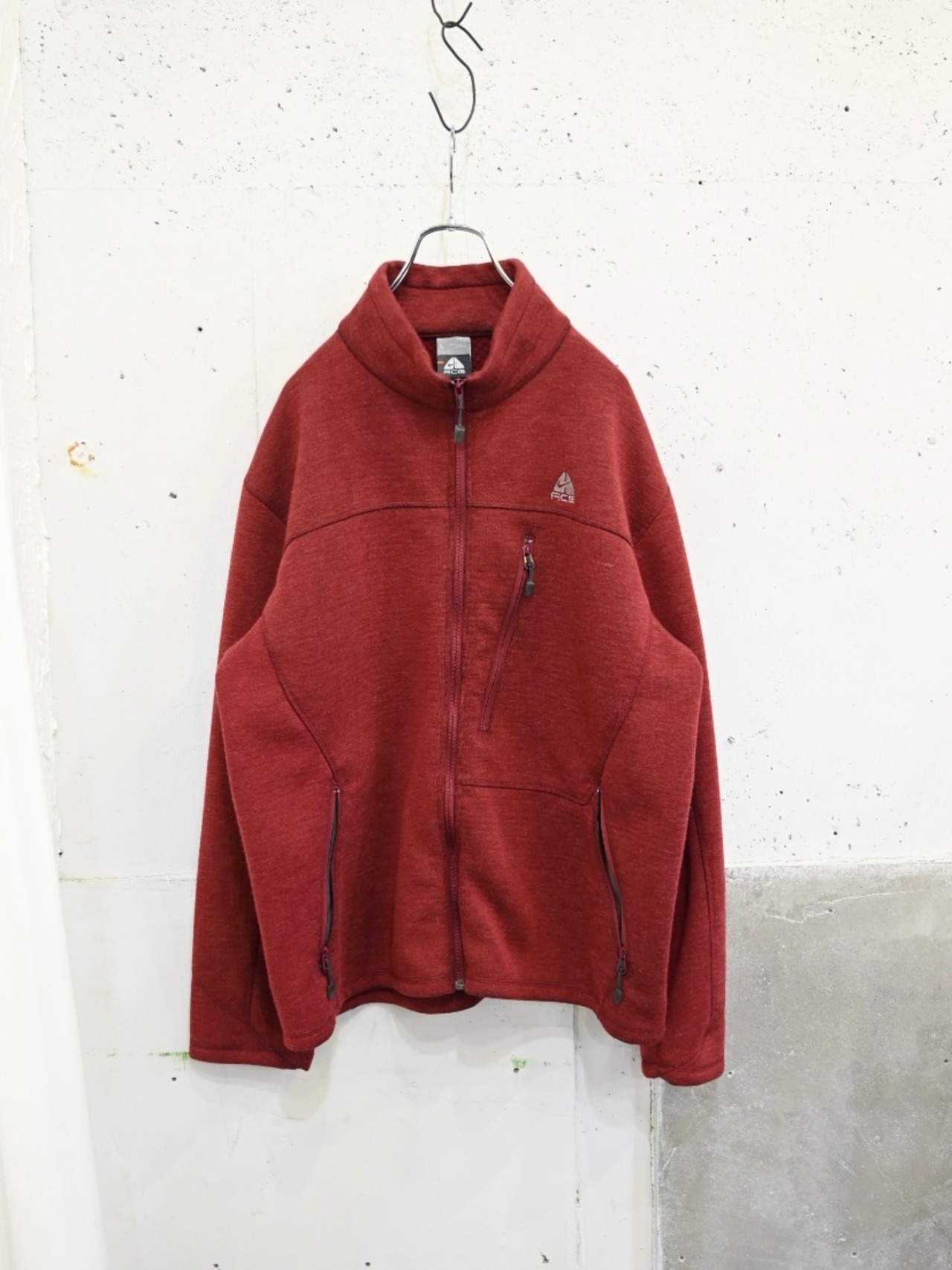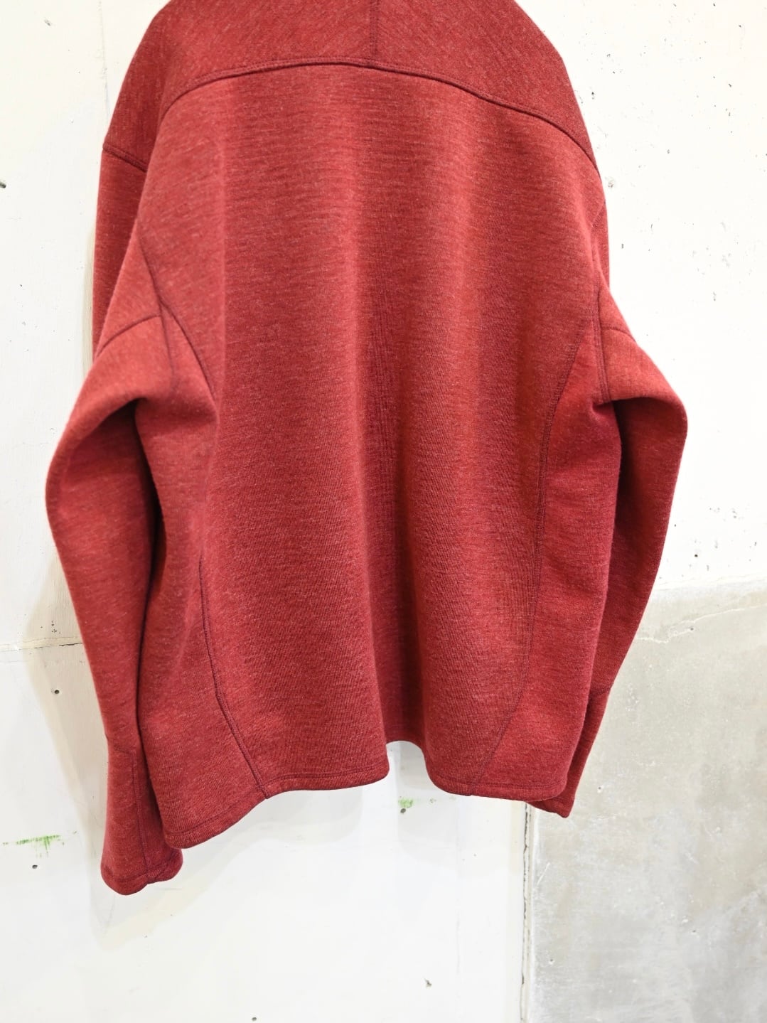 裏面は凹凸感のあるグリッド調フリースで軽くて暖かい仕様。アウターのインナーとしても、ライトアウターとしても使えて、テック寄りすぎないバランスなのでデニムやウールパンツとも相性◎