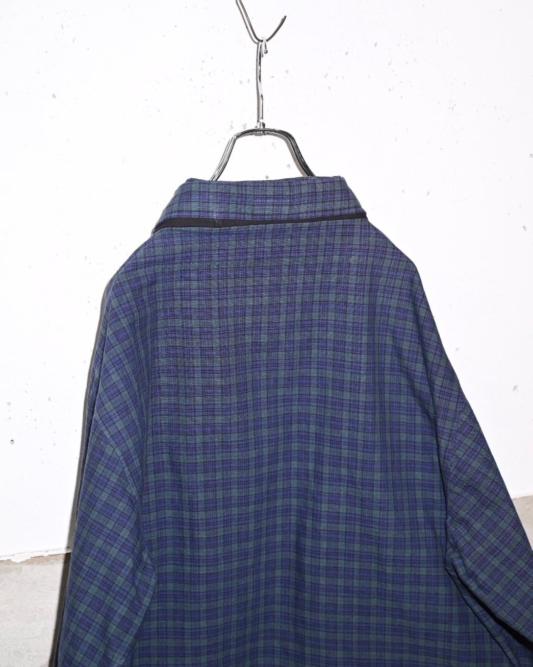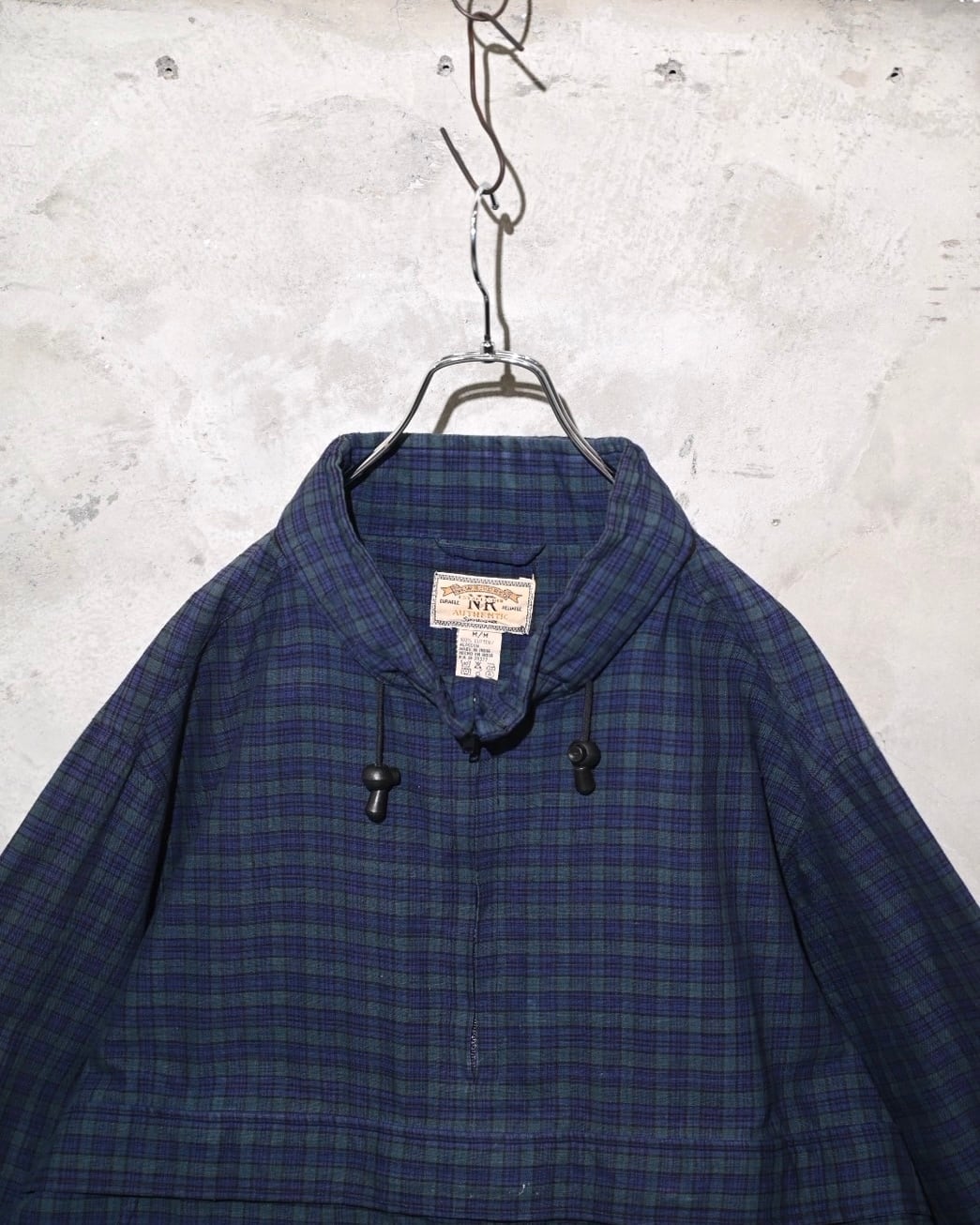 落ち着いたネイビー×グリーンのチェックが印象的な90sプルオーバー。