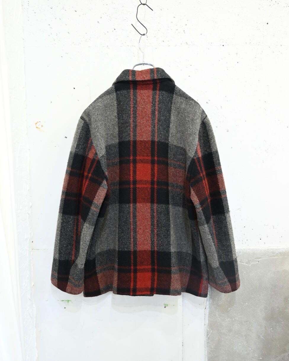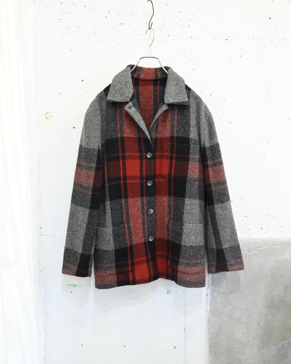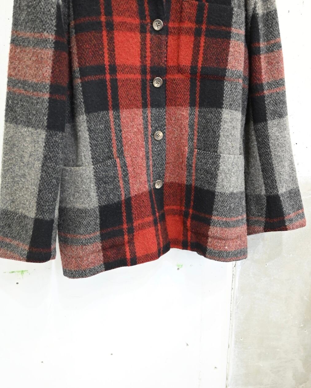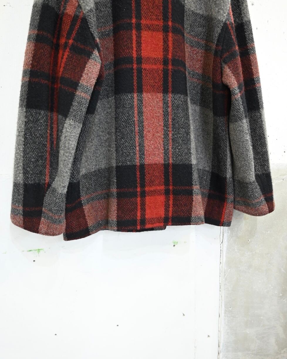 赤×グレーを基調にしたクラシックなチェック柄ウールジャケット。