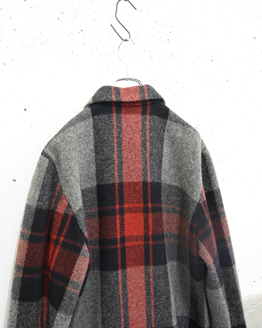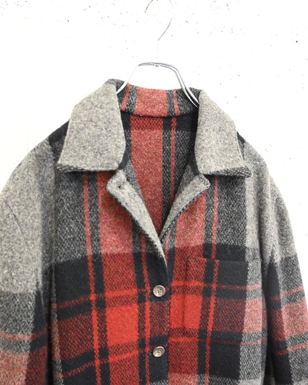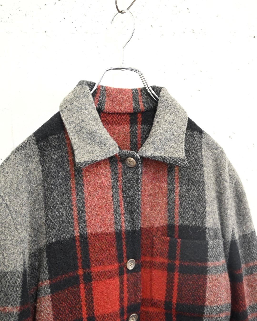 赤×グレーを基調にしたクラシックなチェック柄ウールジャケット。