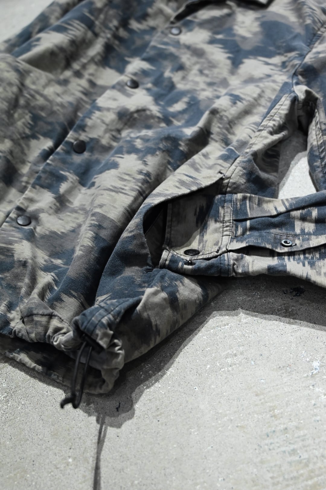コーチジャケットとオープンカラーシャツを融合させたような珍品。ボタンループ付きで裾にはドローコードも搭載
