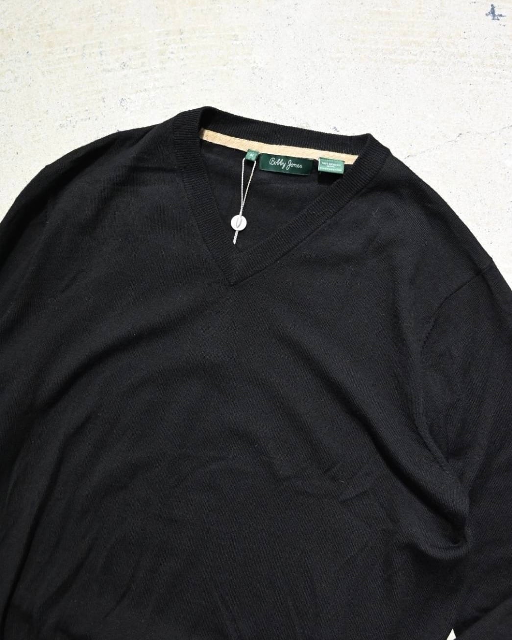ミニマルな表情のVネックメリノウールセーター。