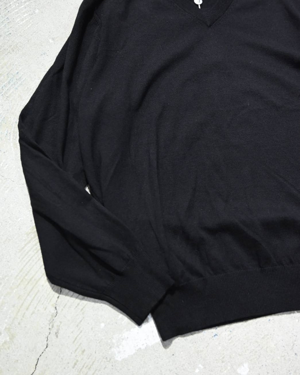 浅めのVネックは上品なバランスで、一枚での着用はもちろんシャツとのレイヤードにも◎