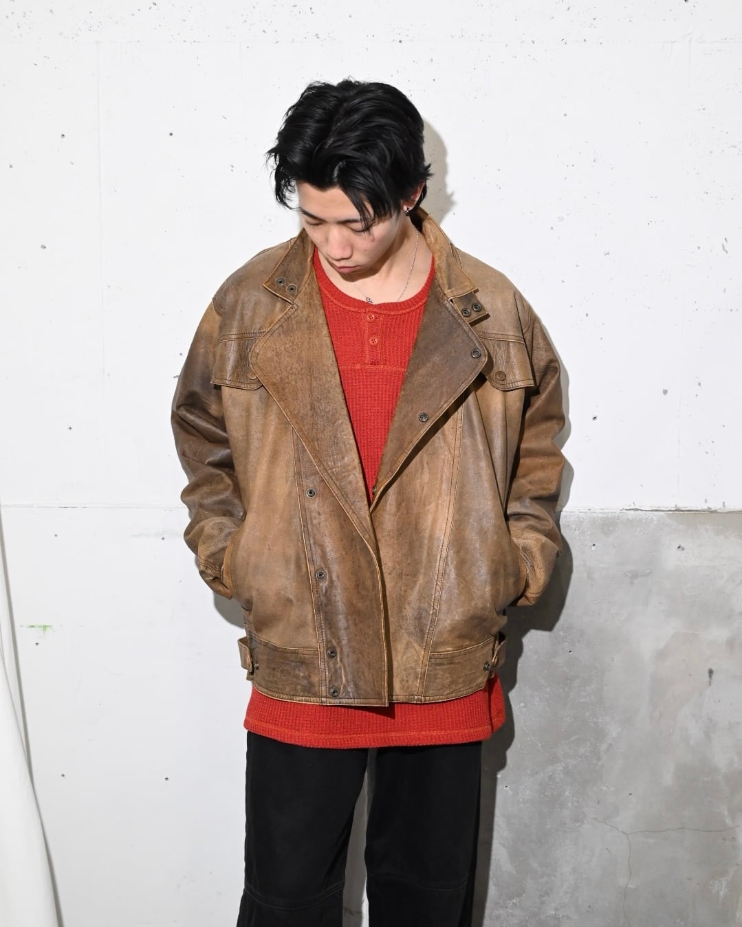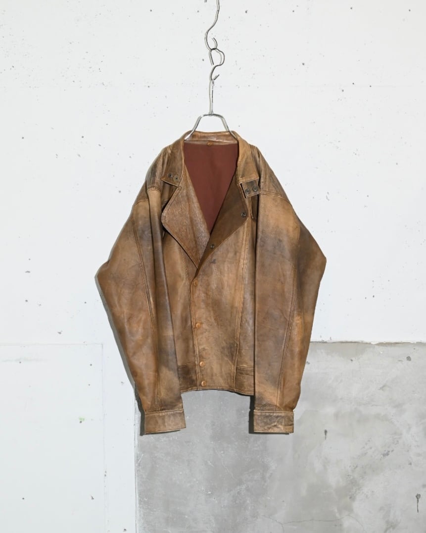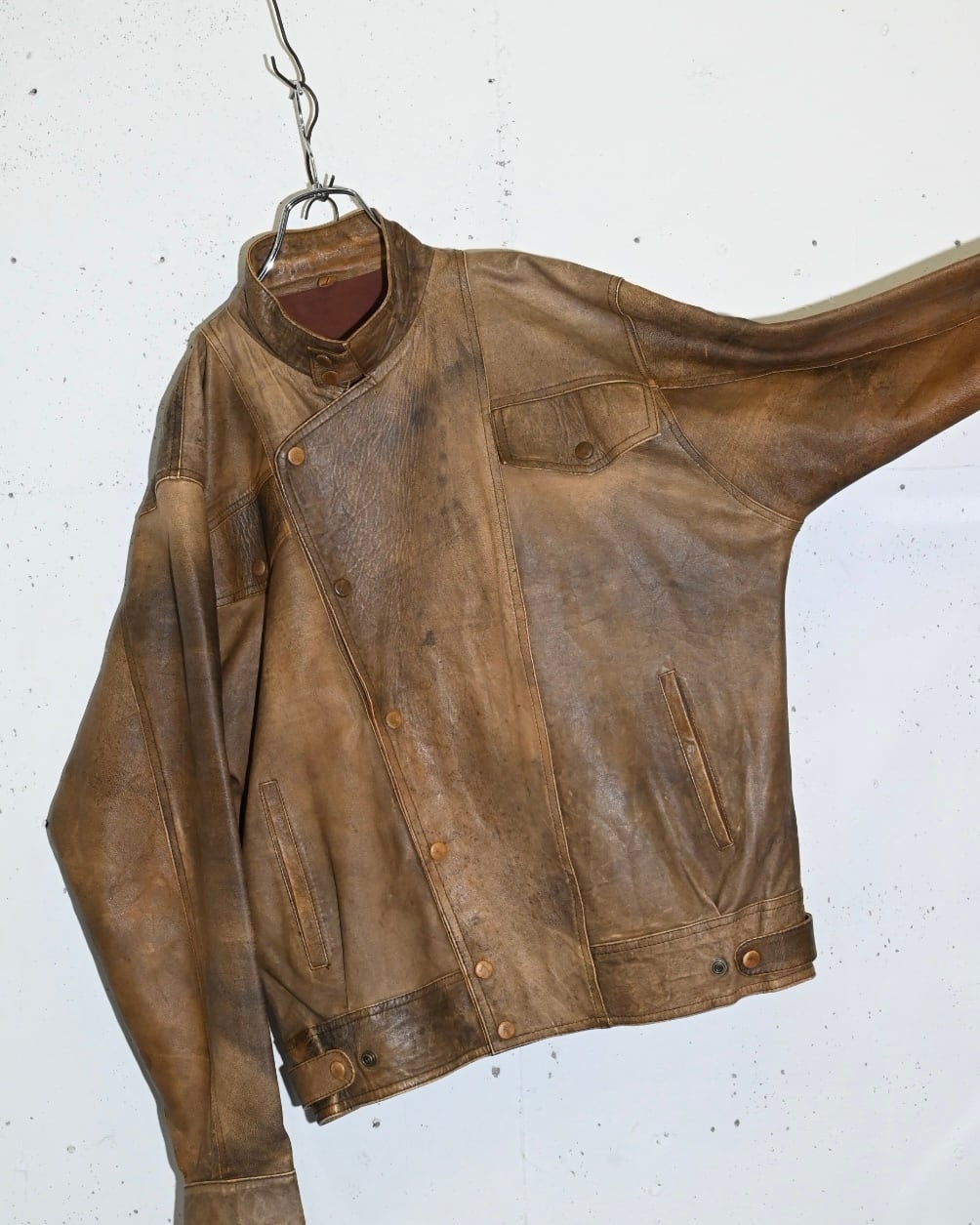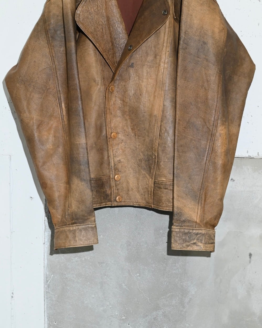"HAND MADE" AGING LEATHER DOUBLE JACKET