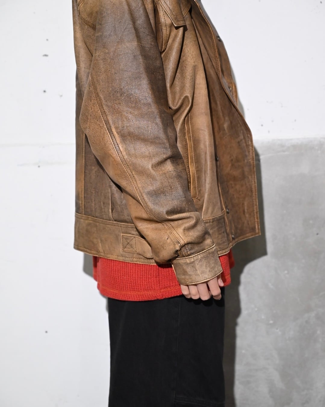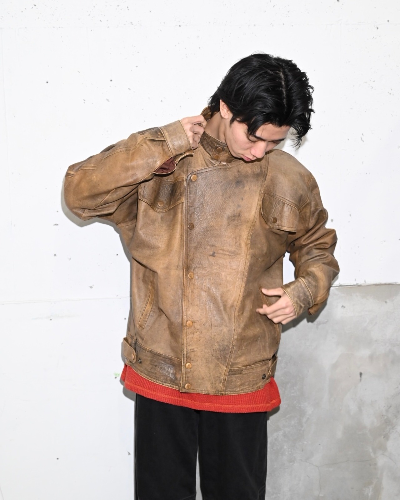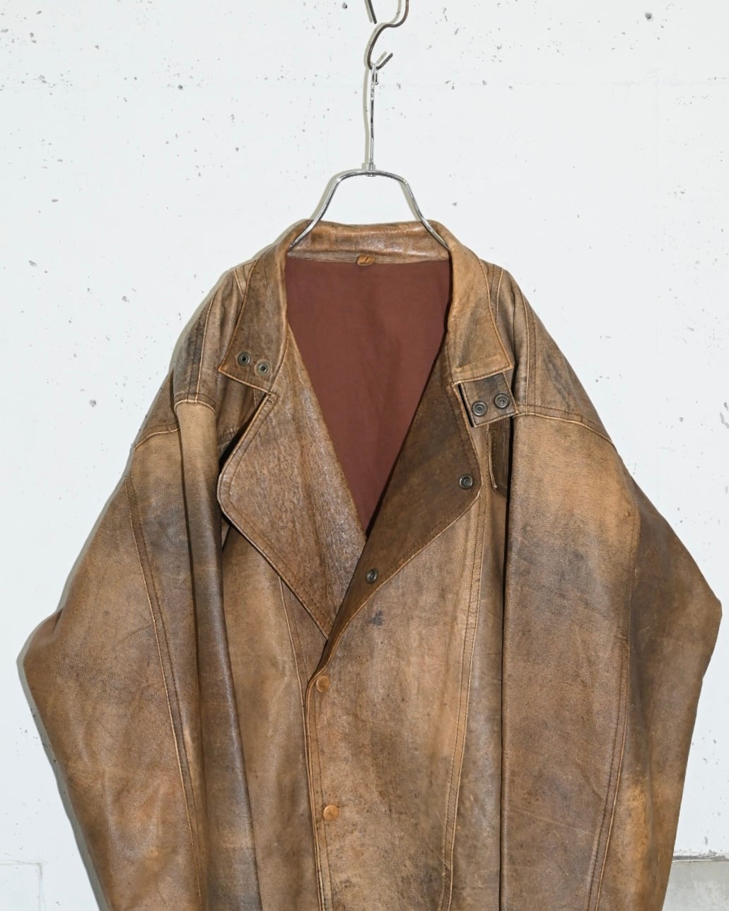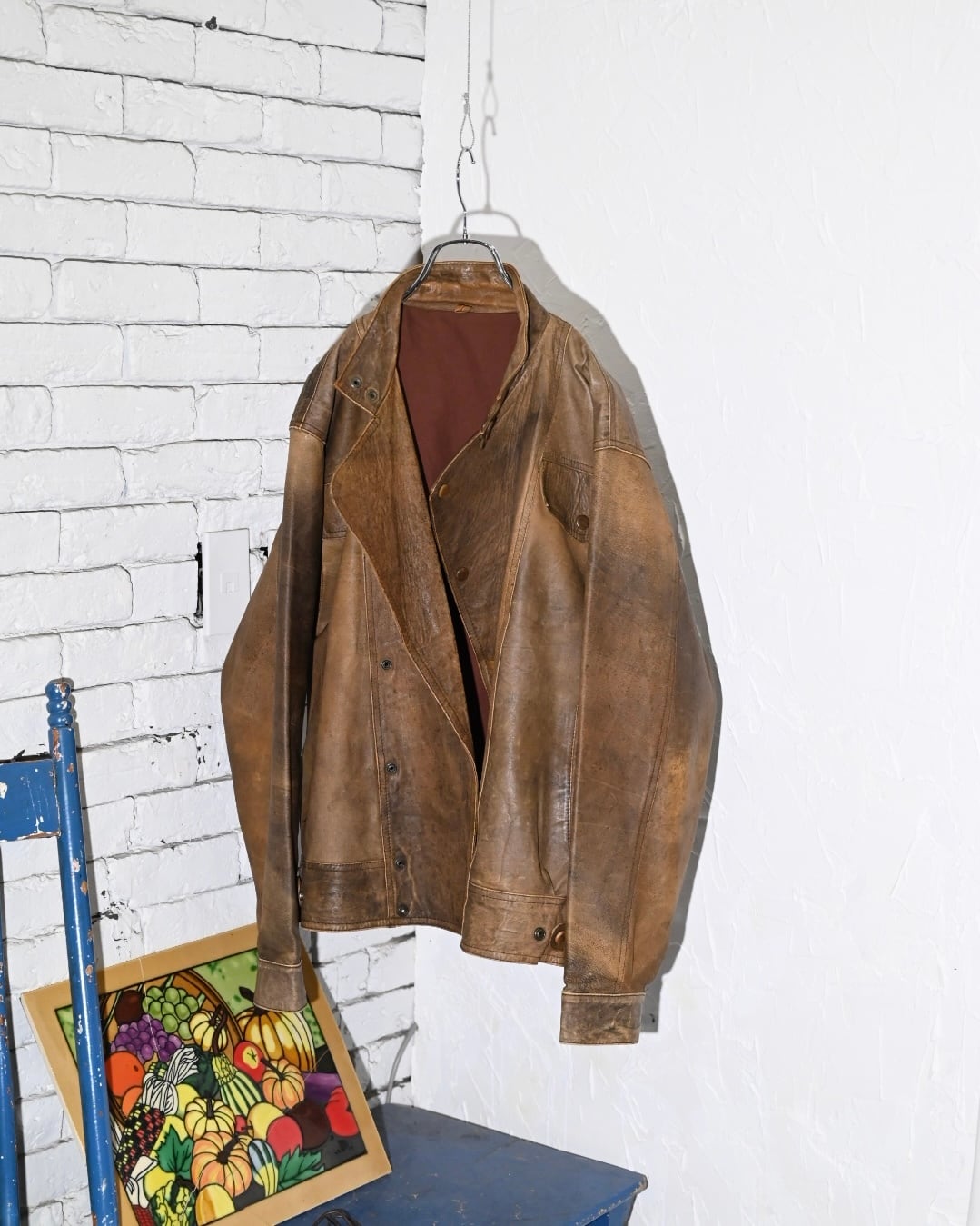 "HAND MADE" AGING LEATHER DOUBLE JACKET