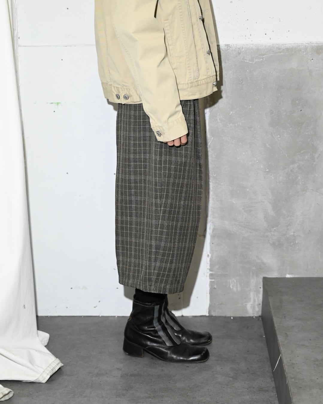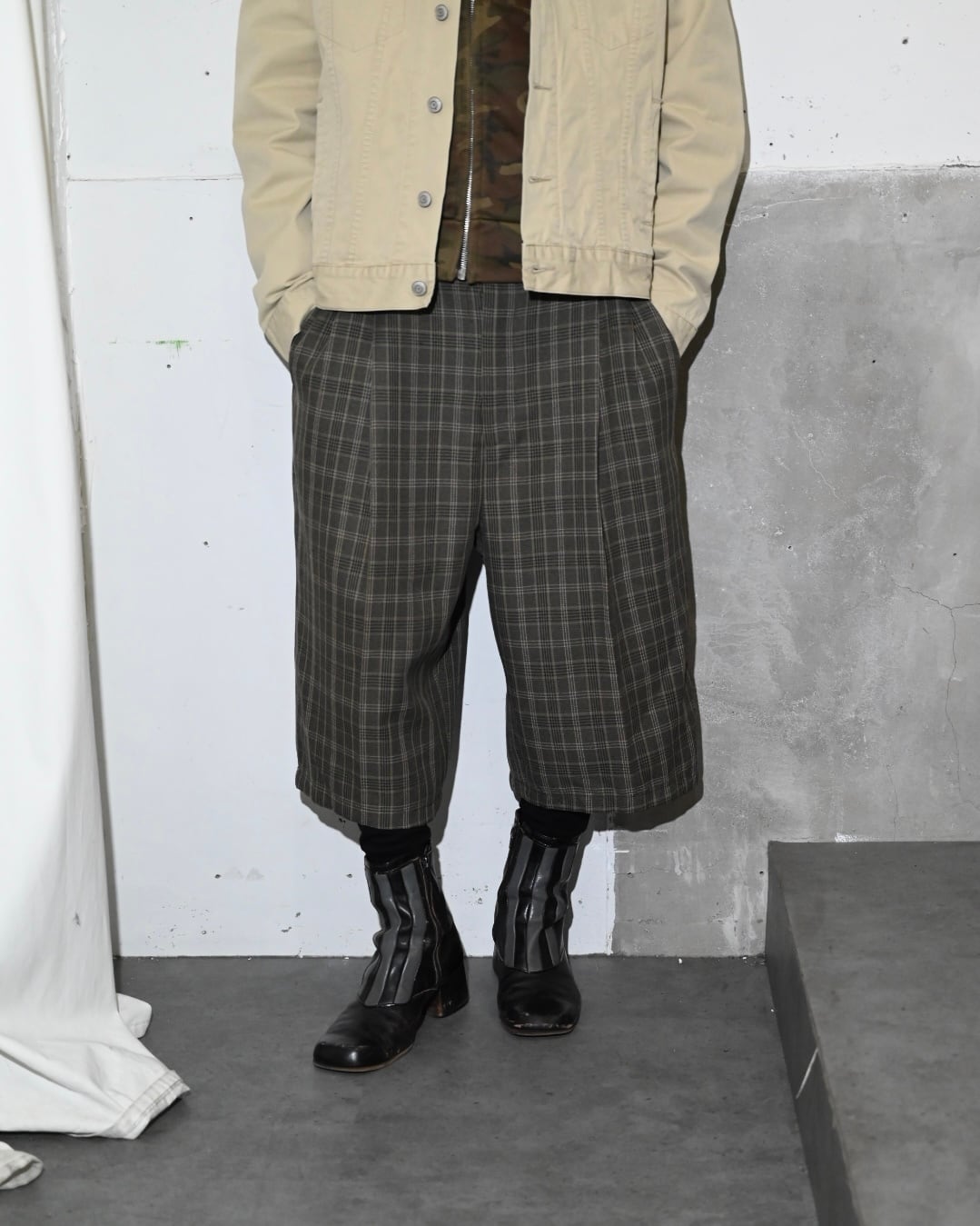 GLEN CHECK TUCK DESIGN WIDE SHORTS