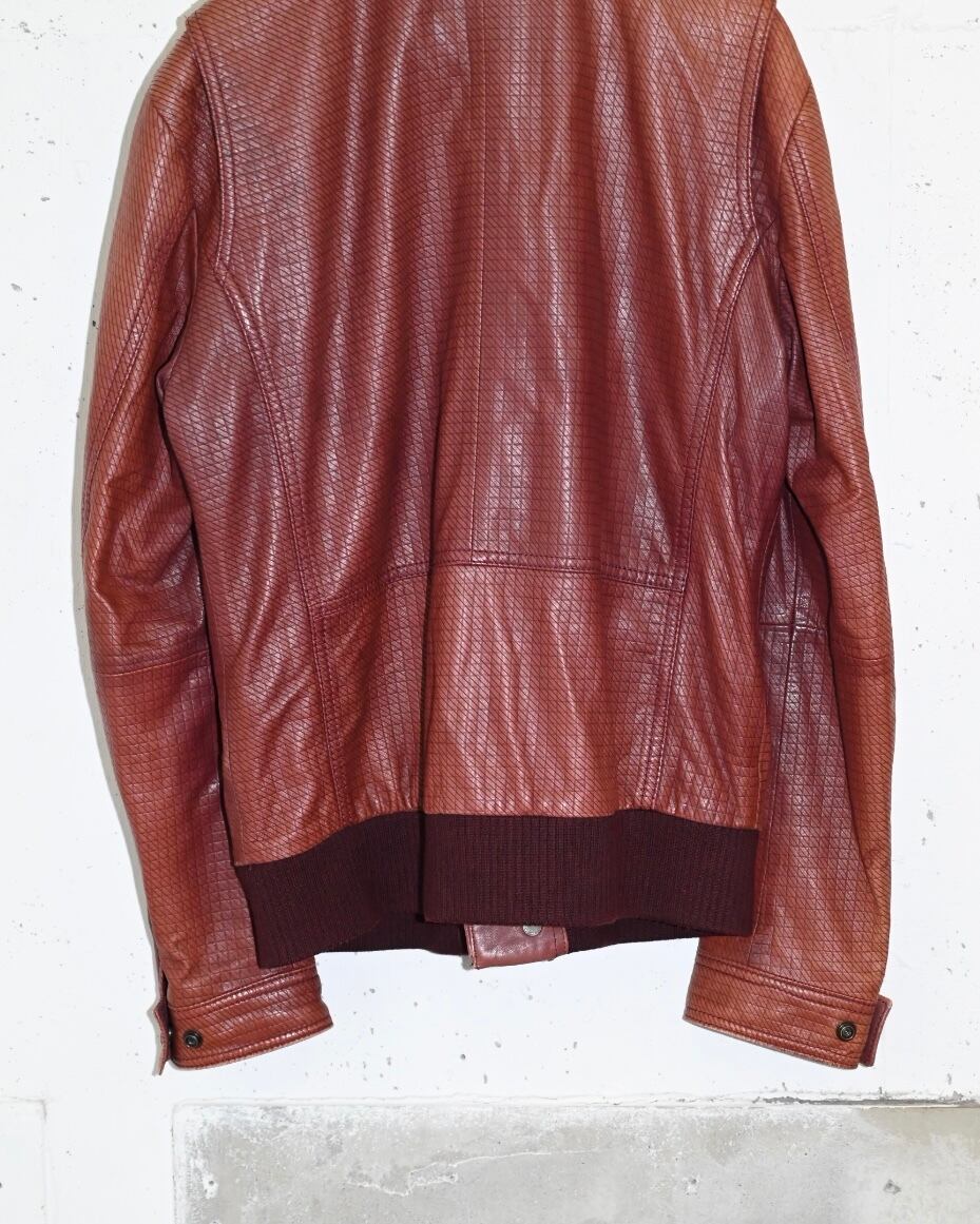 "HUGO BOSS" GRAINED LAMB LEATHER ZIPUP JACKET
