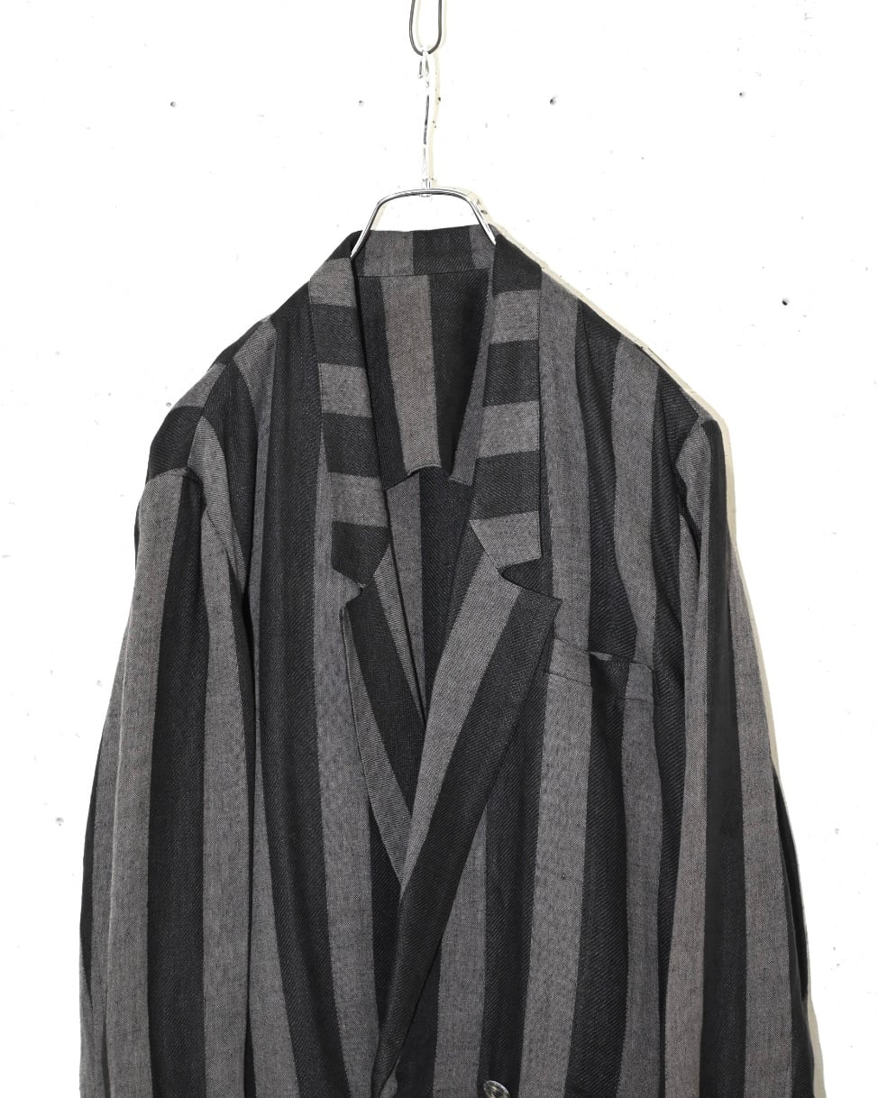 90's LINEN×COTTON DOUBLE BLEST×STRIPE DESIGN EASY TAILORED JACKET