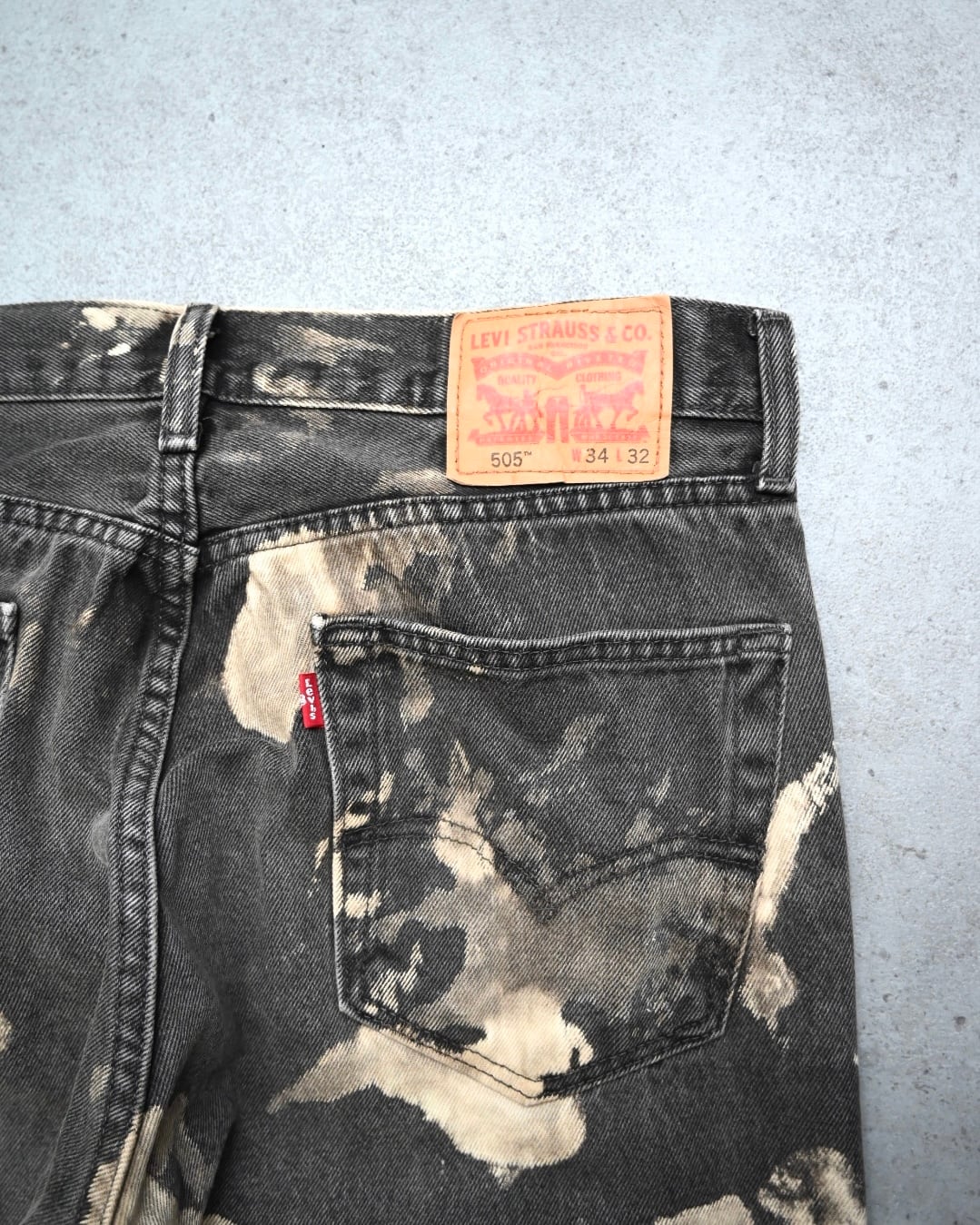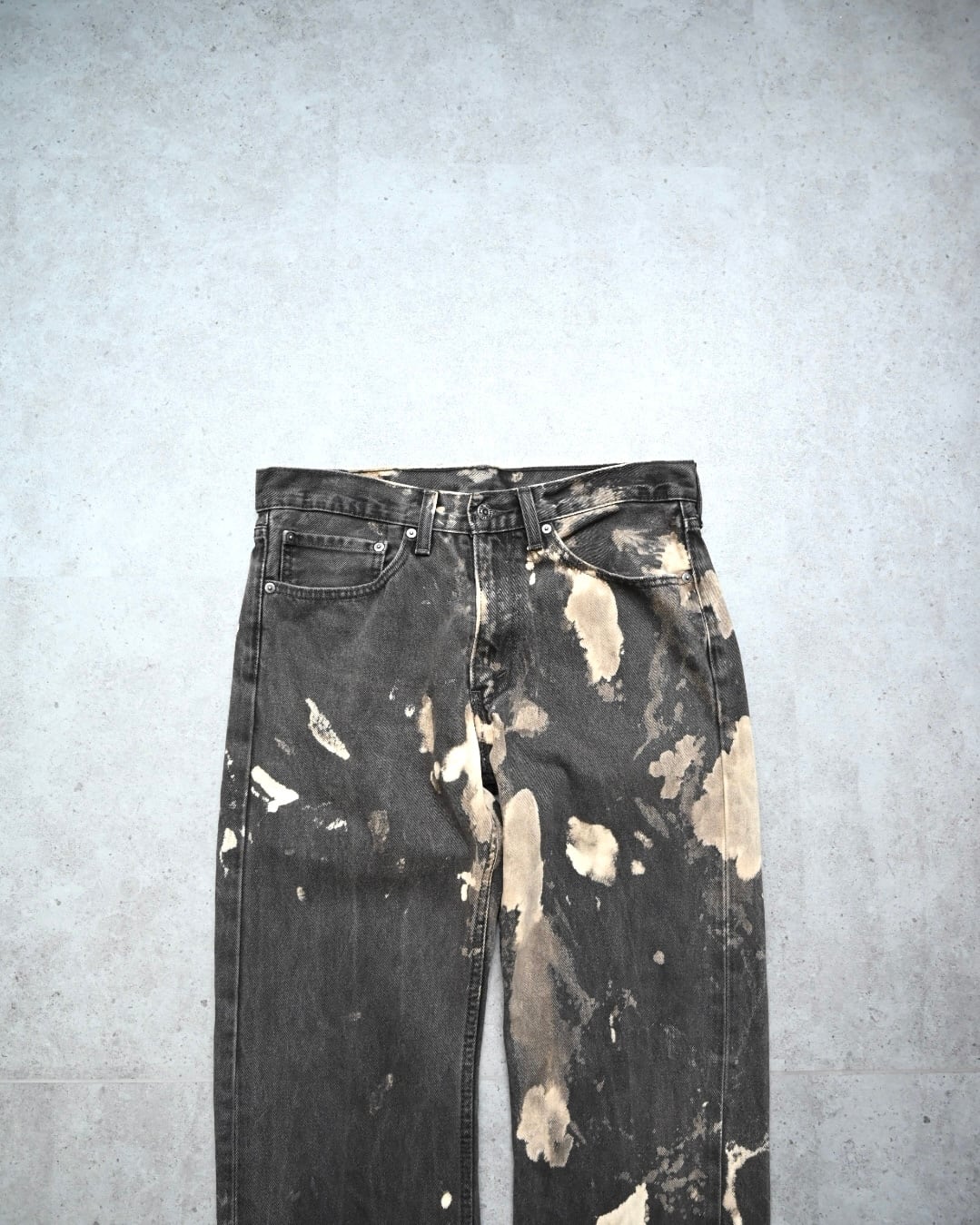 "Levi's" 505 BLEACH DESIGN FADED BLACK DENIM