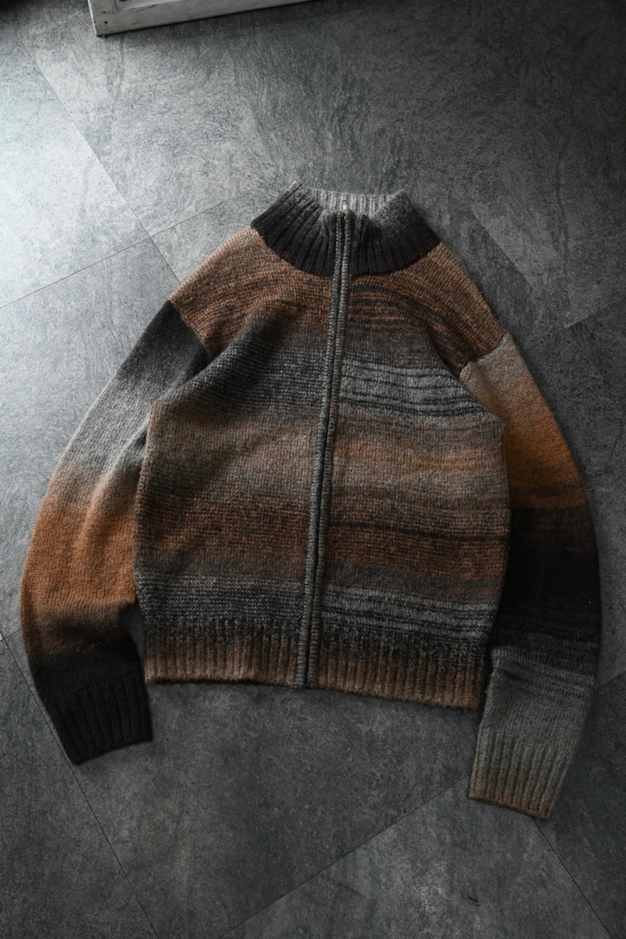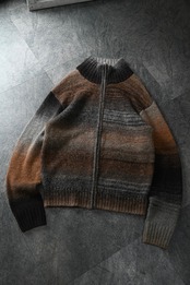 SHADOW BORDER DESIGN ZIPUP KNIT JACKET